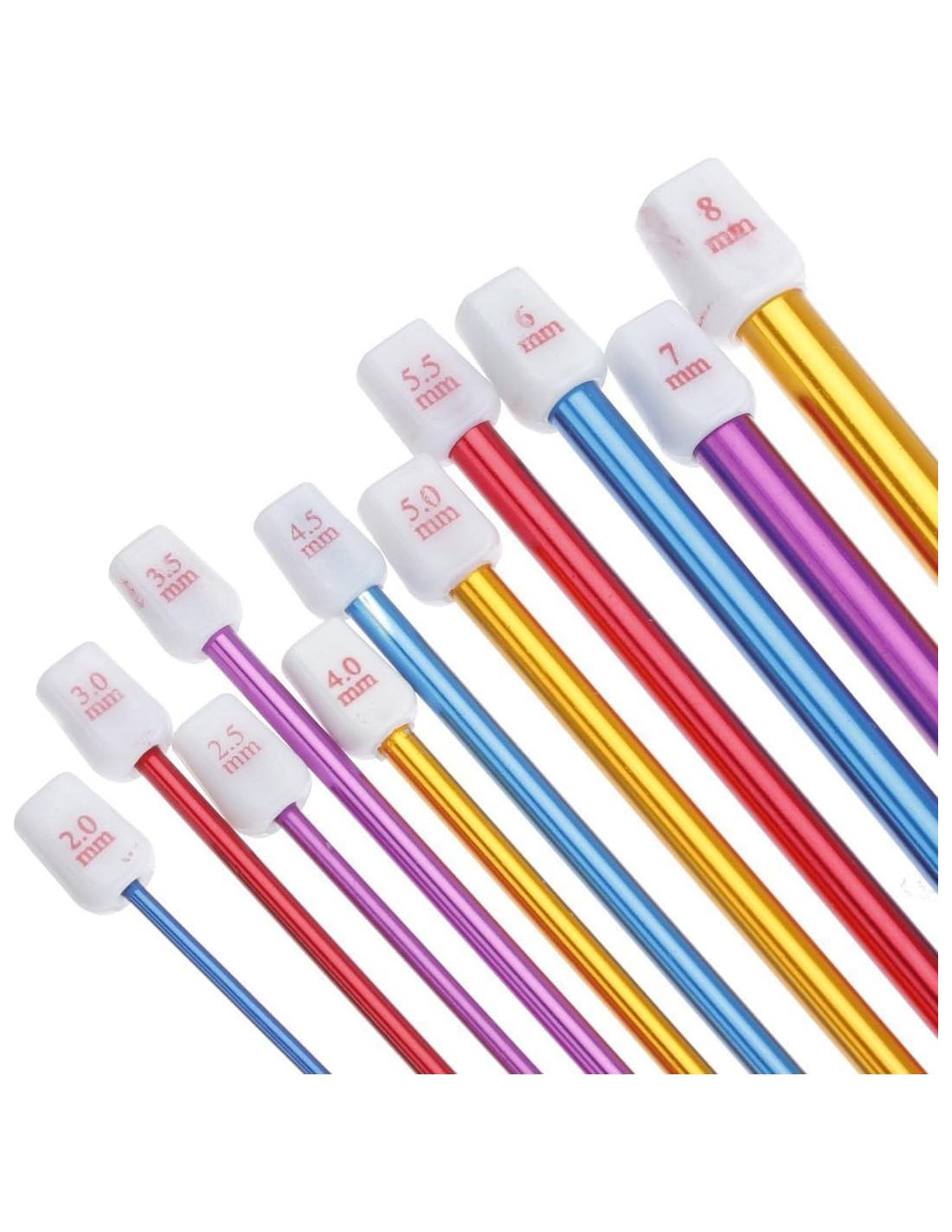 - 11 tamaños diversos: 2mm, 2.5mm, 3mm, 3.5mm, 4mm, 4.5mm, 5mm, 5.5mm, 6mm, 7mm, 8mm, diferentes tamaños pueden satisfacer tus solicitudes diarias de tejido.