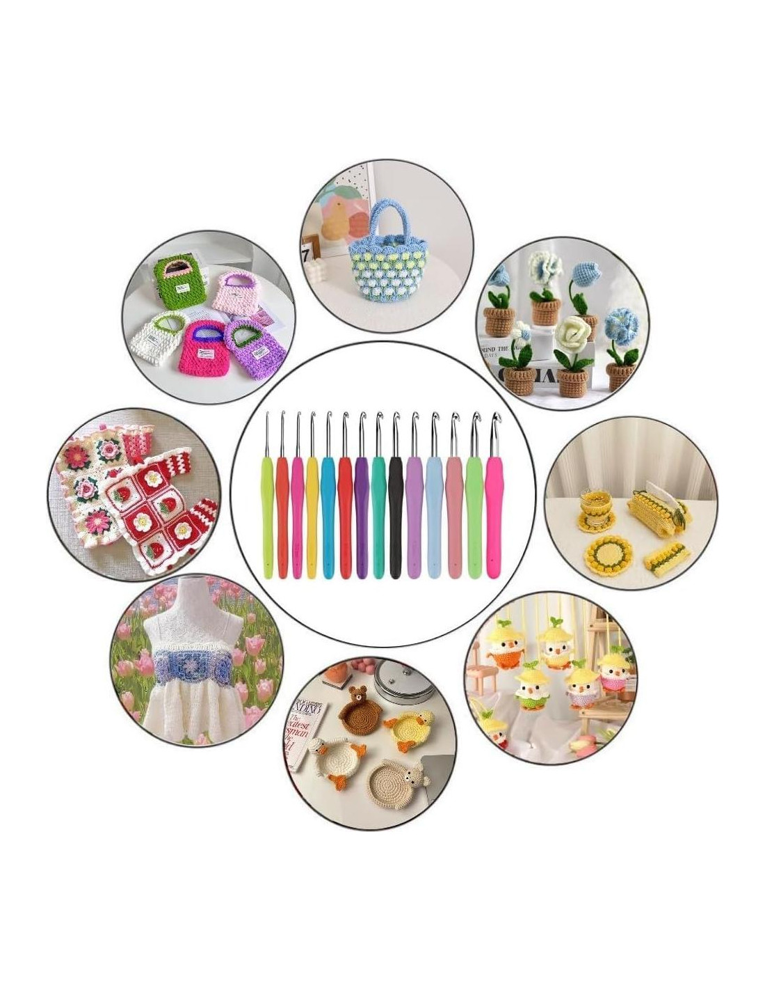 - Juego Completo El juego de ganchillos incluye 14 tamaños de ganchillos. Los ganchillos incluyen: 2.0mm, 2.5mm, 3.0mm, 3.5mm, 4.0mm, 4.5mm, 5.0mm, 5.5mm, 6.0mm, 6.5mm, 7.0mm, 8.0mm, 9.0mm, 10.0mm. Cada gancho tiene su número de tamaño grabado, fácil de reconocer y usar