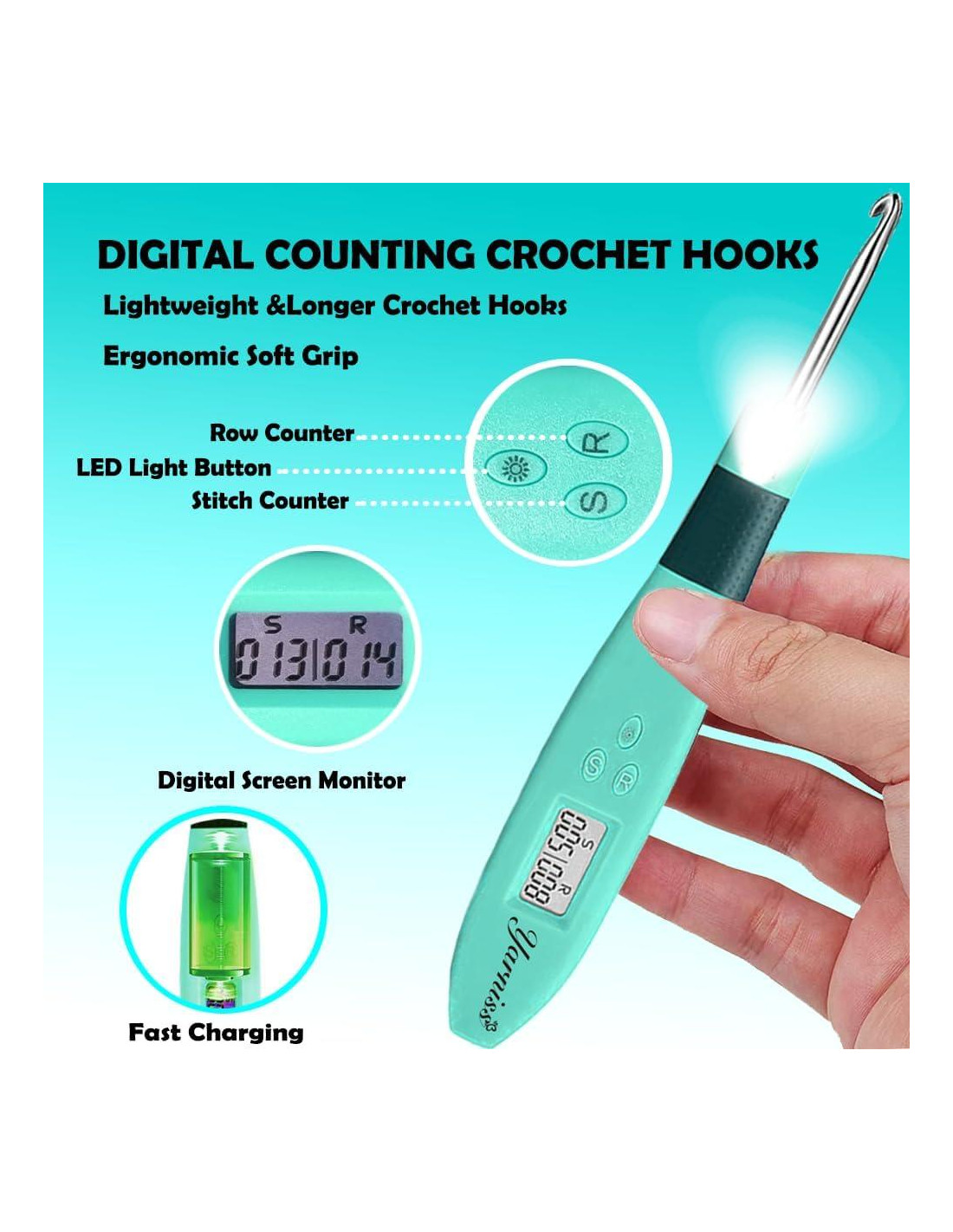 - Juego de Ganchillos de Crochet Iluminados - Disfruta de la combinación perfecta de brillo ajustable y ganchillos de crochet iluminados que cuentan puntos. El crocheting se vuelve sin esfuerzo en cualquier condición de iluminación, nunca te preocupes por el hilo oscuro y perder tus puntos.