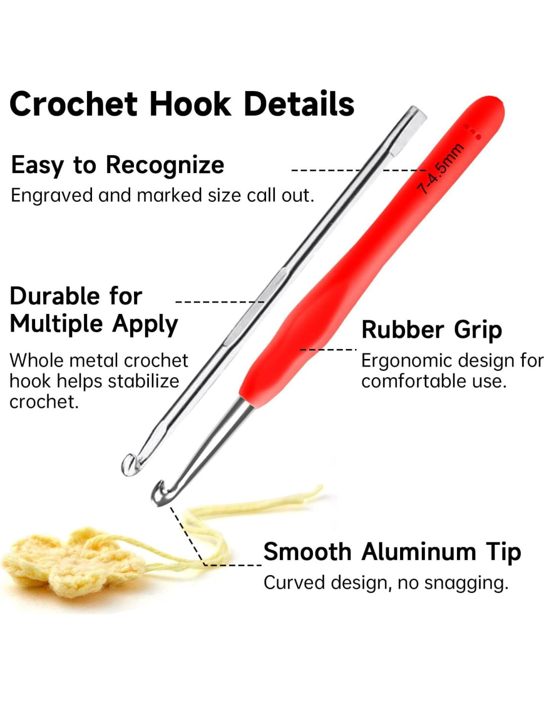 - 67 Pcs Gran Valor: Este kit incluye todo lo que necesitas para ganchillar. Las 67 herramientas incluyen 13 ganchillos de mango de goma, 20 marcadores de puntos de tejido, 10 marcadores de anillo, 10 alfileres dorados, 9 agujas de coser, 1 anillo guía de hilo, 1 cinta métrica, 1 contador de filas, 1 tijeras y 1 estuche para ganchillos.