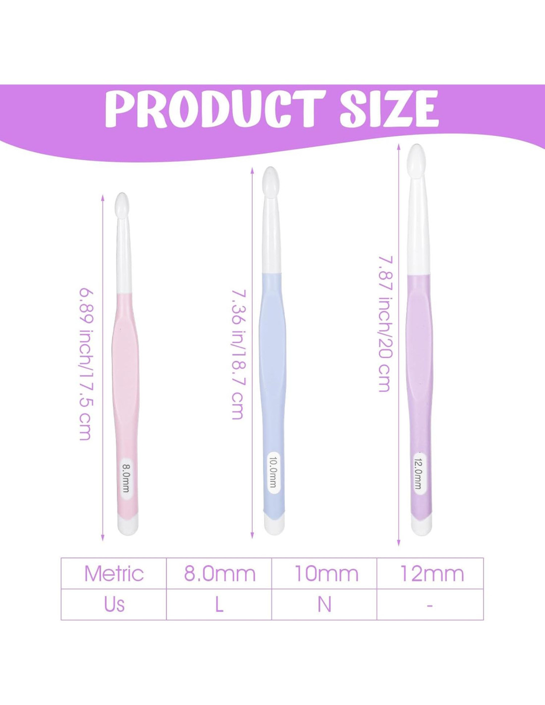 - [Juego Completo en Un Paquete] El empaque incluye 3 piezas de ganchos de crochet en diferentes longitudes (6.89 in (17.5 cm) a 7.87 in (20 cm)), haciendo de este conjunto un kit completo para todos tus accesorios de hilo y necesidades de tejido.