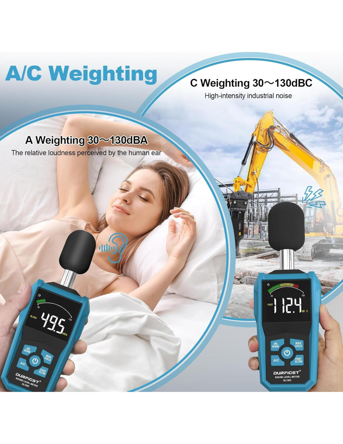 - [Versátil y Portátil] El medidor de db cuenta con funciones de grabación de máximo/mínimo y retención de datos, lo que le permite comprender fácilmente su entorno. La pantalla LCD a color del medidor de sonido, el diseño de bola de protección contra el viento, la funda de tela, el recubrimiento de goma suave y el diseño de mano lo hacen conveniente y cómodo para su uso al aire libre.