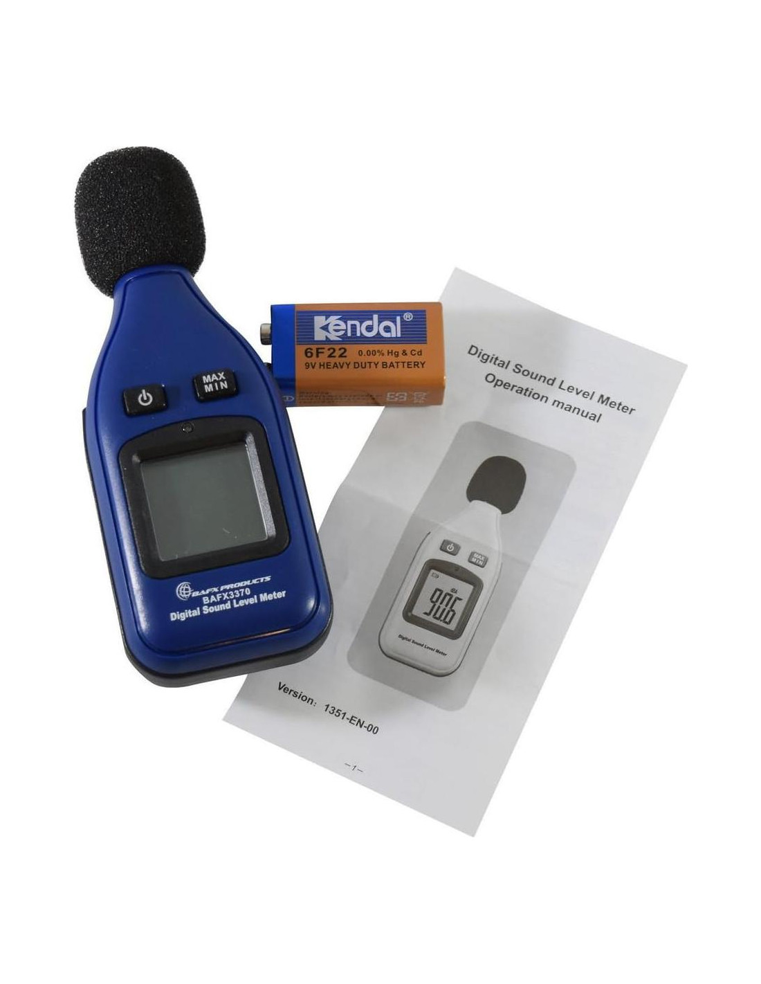 - CARACTERÍSTICAS - Pantalla retroiluminada automática para fácil visibilidad en situaciones oscuras. Función de retención MAX/MIN para medir picos absolutos altos/bajos. +/- 1.5dBA con resolución de 0.1dBA y rango de medición de 30-130dBA. Función de apagado automático para ahorrar batería (fácilmente desactivable). Tasa de muestreo de 2x/Sec. Hasta 30 horas de uso continuo con una sola batería de 9V.