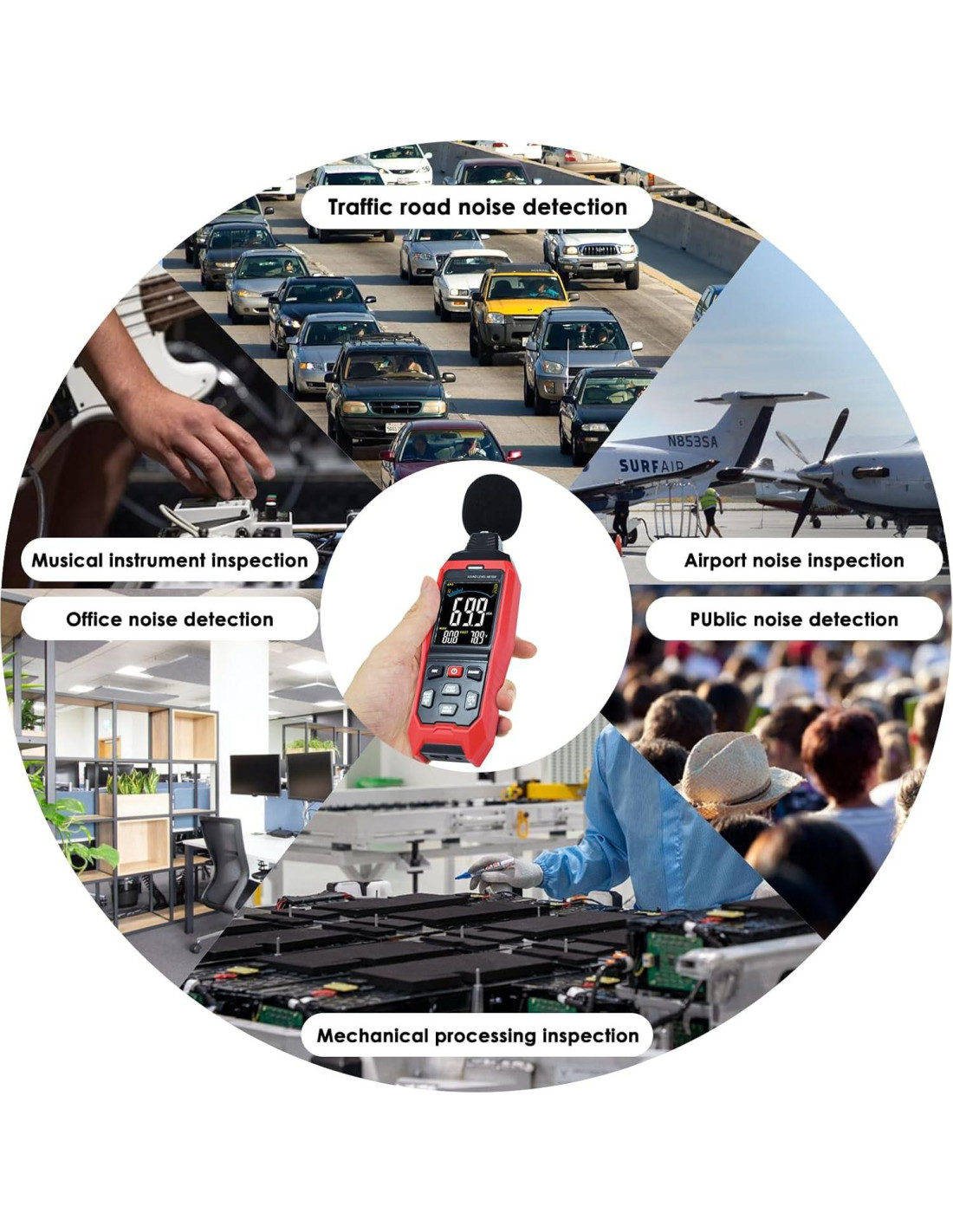 - [Alta Precisión] El medidor de nivel de sonido DANOPLUS está equipado con una gran pantalla LCD a color con escala de barra analógica, precisión de +/-1.5dB con un rango de medición de 30~130dB y micrófono de 1/2 pulgada (1.27 cm)