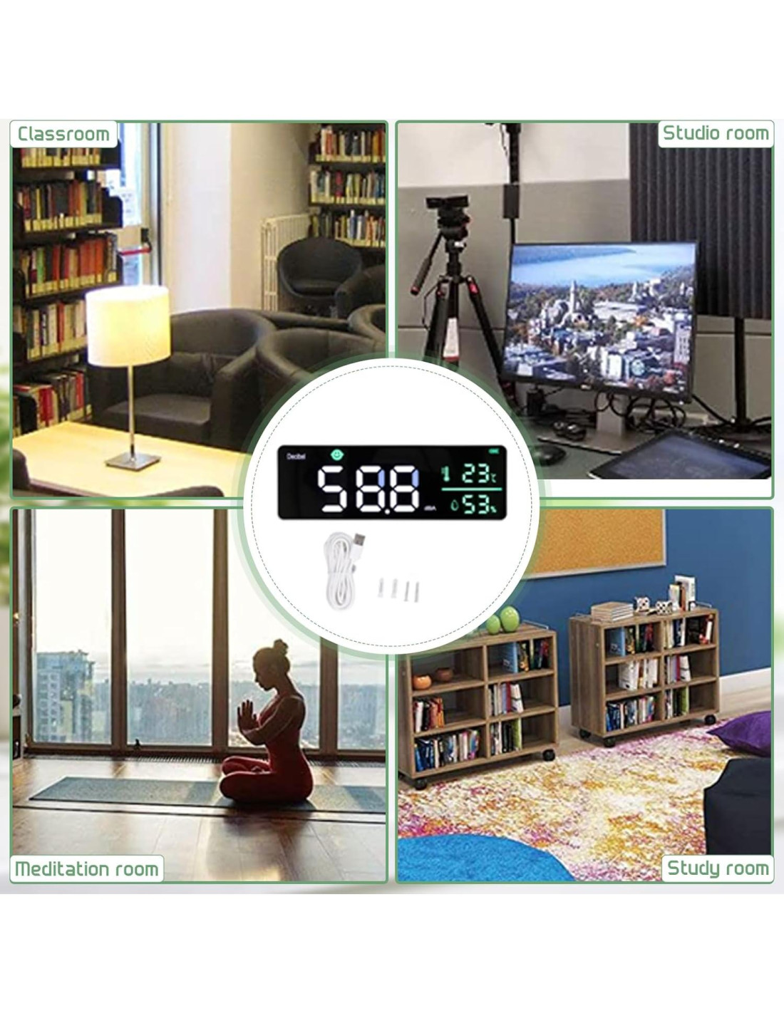 - LARGO CABLE USB: Este monitor de ruido viene con un cable USB de 9.8 (300 cm) de largo, por lo que no tienes que preocuparte de que el cable USB no sea lo suficientemente largo al cargar.