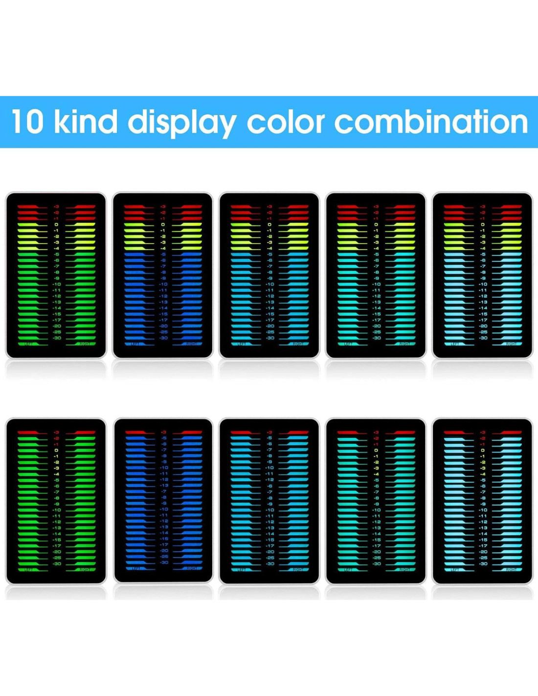 - Medición Precisa del Nivel de Sonido: Equipado con 24 perlas de lámpara LED RGB por canal y un indicador de dB de 24 niveles, este medidor proporciona una visualización precisa en tiempo real del nivel de audio, mejorando tu experiencia de escucha.