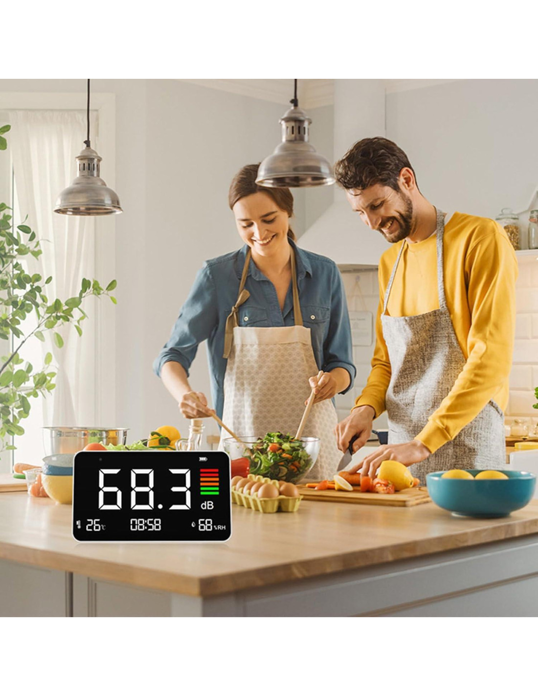 - [Fácil de Usar] Haga clic en "botón izquierdo" para aumentar el brillo, haga clic en "botón derecho" para reducir el brillo, mantenga presionado "M" para ajustar la hora. Preferimos usar el Medidor de Decibelios Portátil en la encimera.