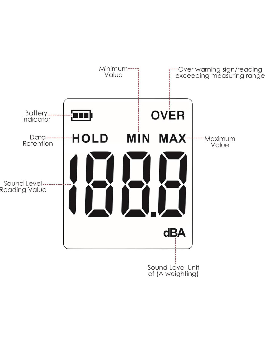 - MEDIDOR DE NIVEL DE SONIDO VERSÁTIL: Un gran medidor de sonido básico utilizado para medir el nivel de sonido ambiental, como el nivel de sonido alrededor de fábricas, talleres, escuelas, residencias, oficinas, carreteras, audio, etc. También puede ser apropiado para ingeniería de ruido, control de calidad de productos, prevención y tratamiento de salud, etc.
