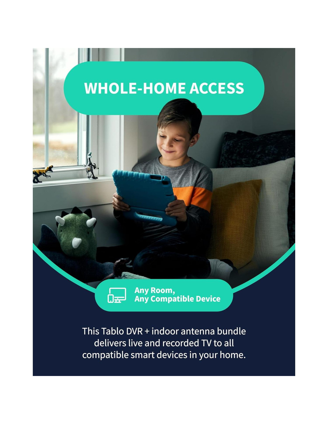 - ACCESO EN TODO EL HOGAR: 1 DVR y la antena de TV de 35 millas de rango incluida(1) te permiten ver TV en múltiples dispositivos a la vez, incluyendo smartphones, tabletas, así como TVs inteligentes y reproductores de streaming de Roku, Amazon Fire TV, Apple TV, Android TV, Chromecast con Google TV, Samsung TV, LG TV. Tablo no es compatible con TVs no inteligentes, modelos de TV específicos y computadoras (PCs). Por favor verifica la compatibilidad antes de realizar la compra.