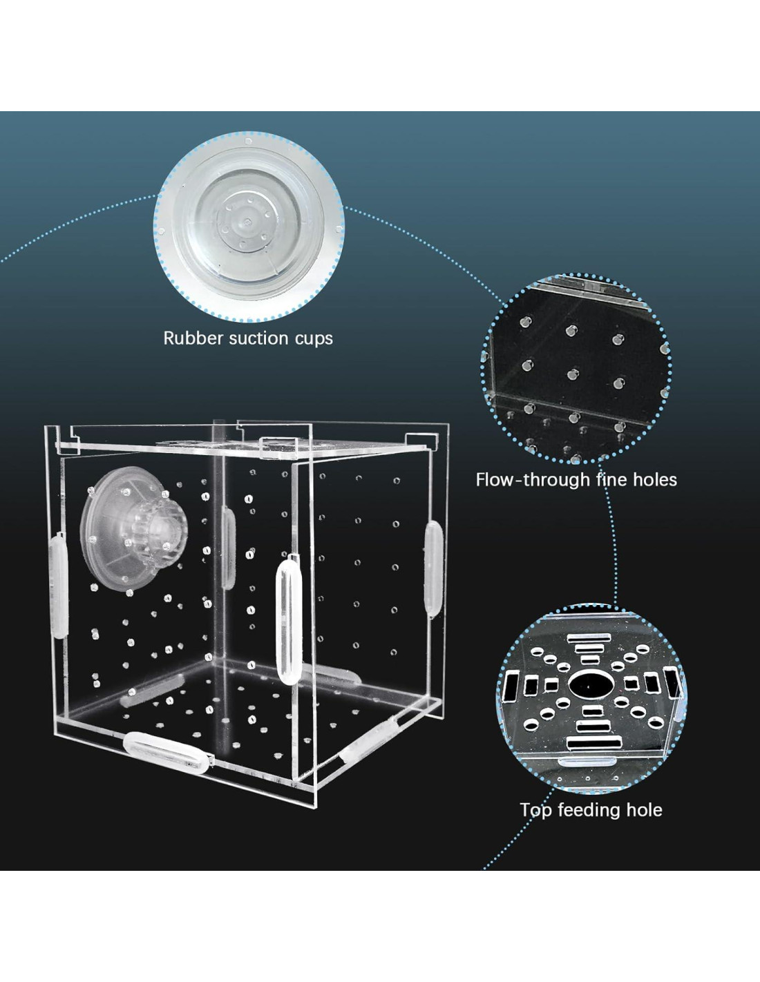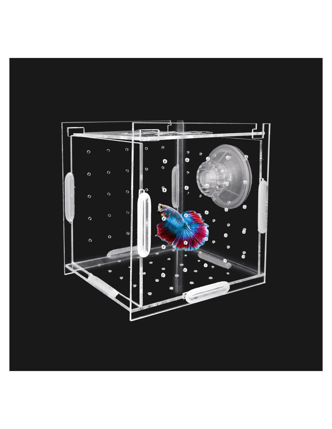 - TAMAÑO: Criadero de peces 9.9 cm x 9.9 cm x 9.9 cm, adecuado para peces agresivos, peces heridos, peces pequeños, camarones y otros peces payaso marinos. NOTA: El producto es transparente, por favor retire la película protectora de cada panel antes de usar
