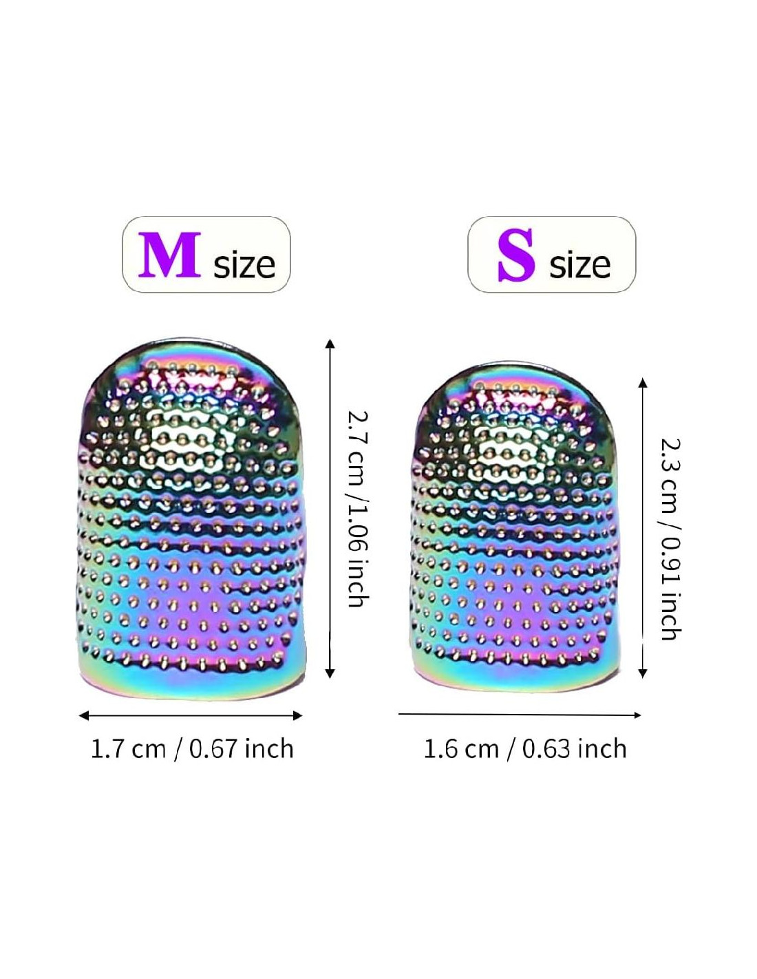 - El paquete incluye 4 dedales, tamaño S * 2 y tamaño M * 2, el tamaño S es 2.3*1.5/0.90"*0.59"(L*D); el tamaño M es 2.5*1.7/0.98"*0.67"(L*D). Eres libre de elegir tu propio tamaño.