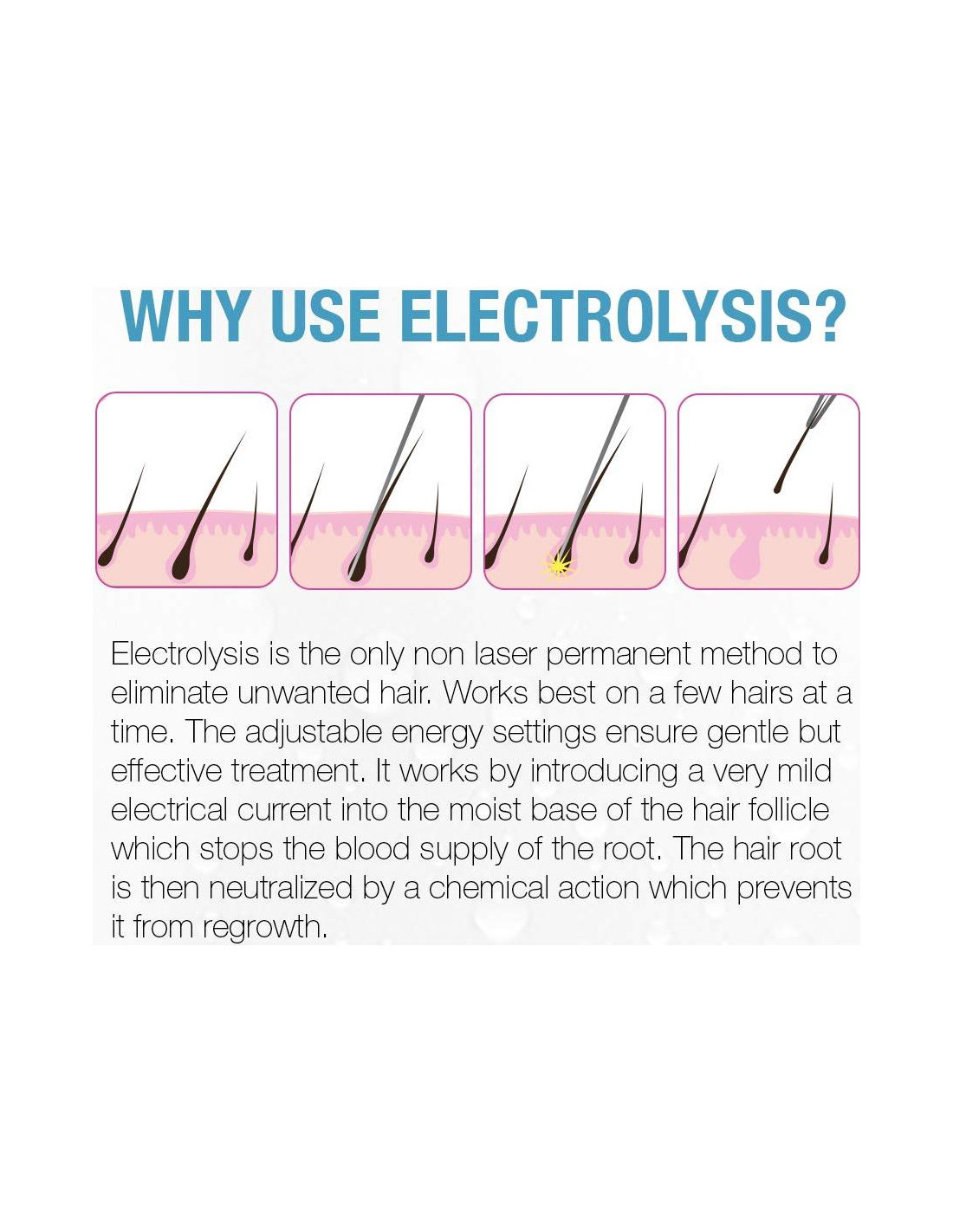 - Esta electrólisis personal es mucho más barata, más conveniente y se puede hacer en la comodidad de su hogar. Perfecta para llevarla cuando viaja y aún obtener resultados de calidad de salón cada vez.