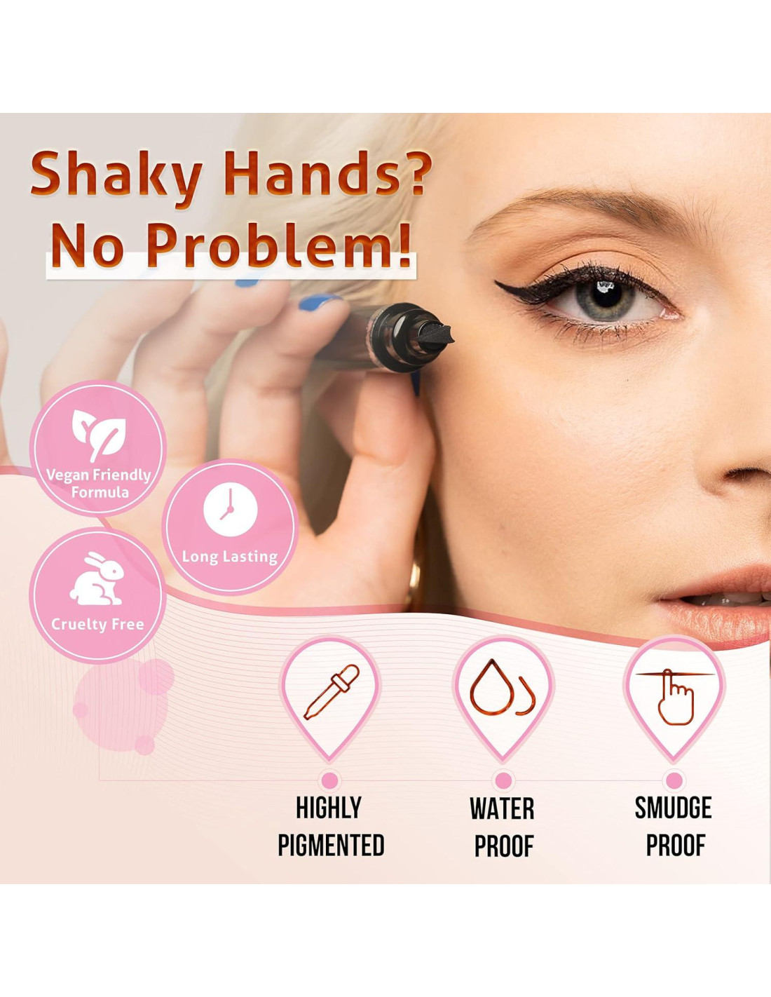 - No Se Requiere Sumergir, La Tinta para el Sello de Ojos de Gato Está en el Bolígrafo - No necesitas un pincel y un frasco desordenado en el que tengas que sumergir. El líquido del delineador de ojos de gato ya está en el bolígrafo y es súper suave para asegurar un color consistente. ¡Compra tu sello de delineador de ojos con alas ahora!