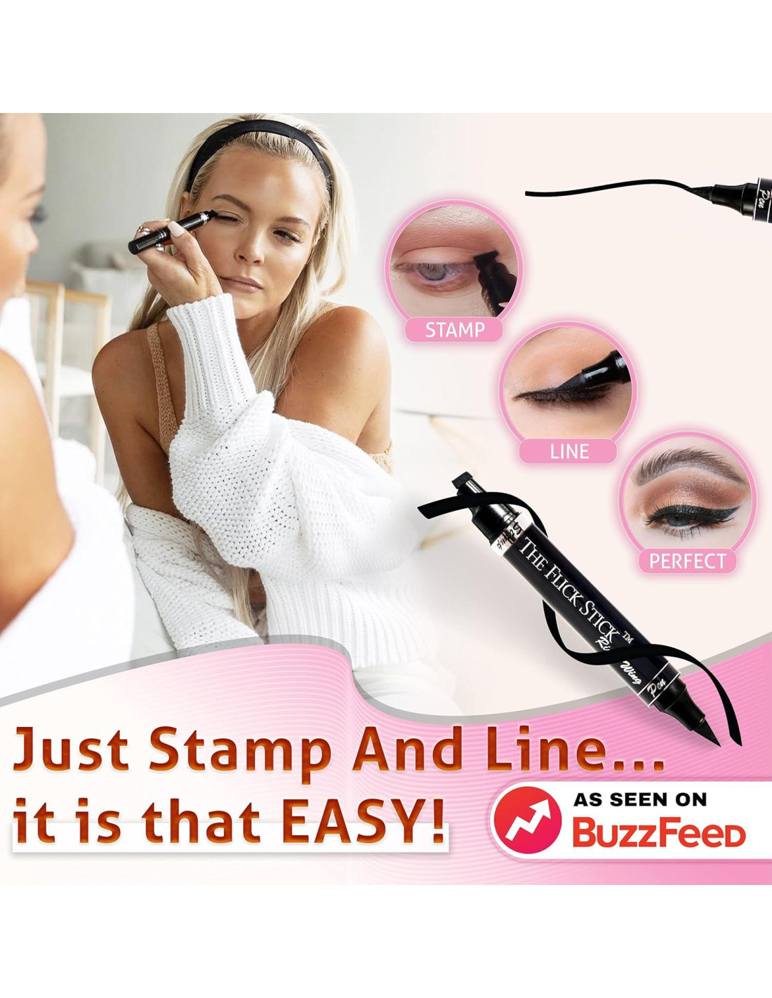 - Las Alas Perfectas Cada Vez - Las alas del delineador de ojos nunca han sido más fáciles. Alinea el sello desde la esquina de tu ojo hasta el final de tu ceja para crear la misma ala en cada lado. La curva en cada delineador de sello proporciona un rápido aspecto natural de ojos de gato