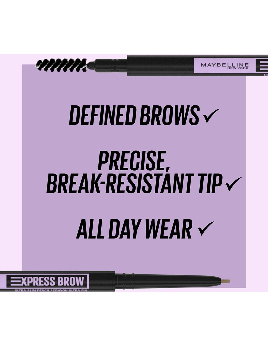 - Lápiz Ultra Delgado de Cejas Express de Maybelline: Toma el camino expreso hacia cejas definidas con precisión, con nuestro lápiz de cejas ultra delgado. Presenta una fórmula de maquillaje ultra suave y resistente a quiebres para tus cejas de aspecto más natural.