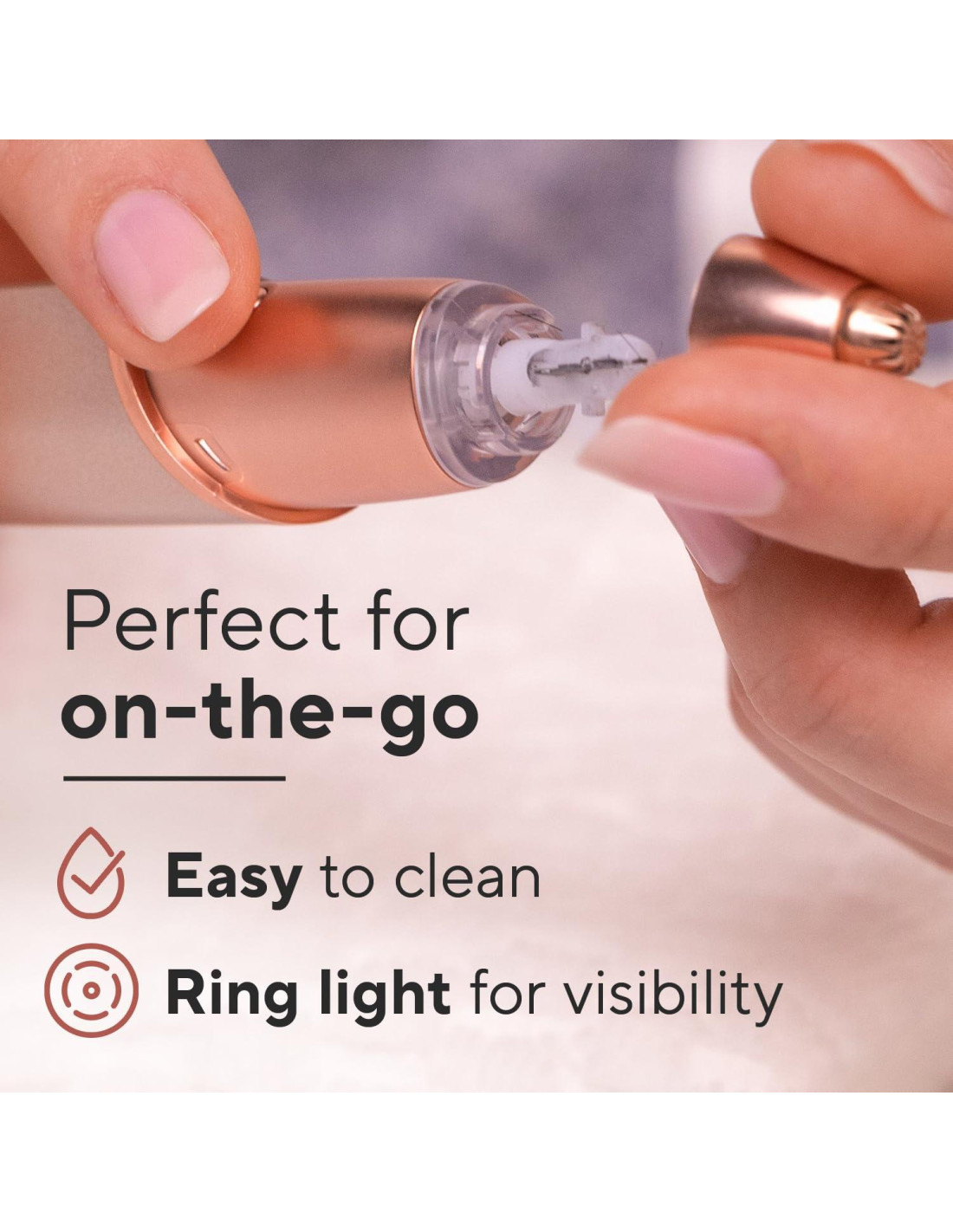 - Un Removedor de Vello de Cejas Finishing Touch Flawless para Mujeres, la afeitadora de cejas para mujeres elimina suavemente el vello de las cejas de la superficie de la piel con precisión milimétrica
