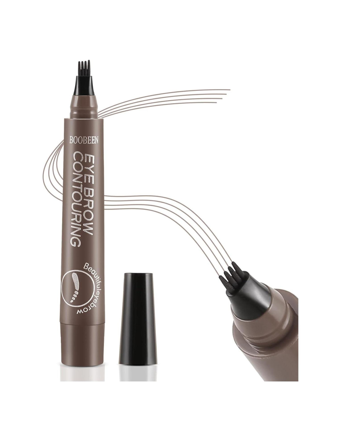 - Lápiz de Cejas Líquido de 4 Puntas: Diseño único de punta bifurcada en cuatro. Trazos suaves y firmes representan líneas precisas y contornos perfectos de cejas. Lápiz de cejas microblade suave dispensa tinta sin grumos.