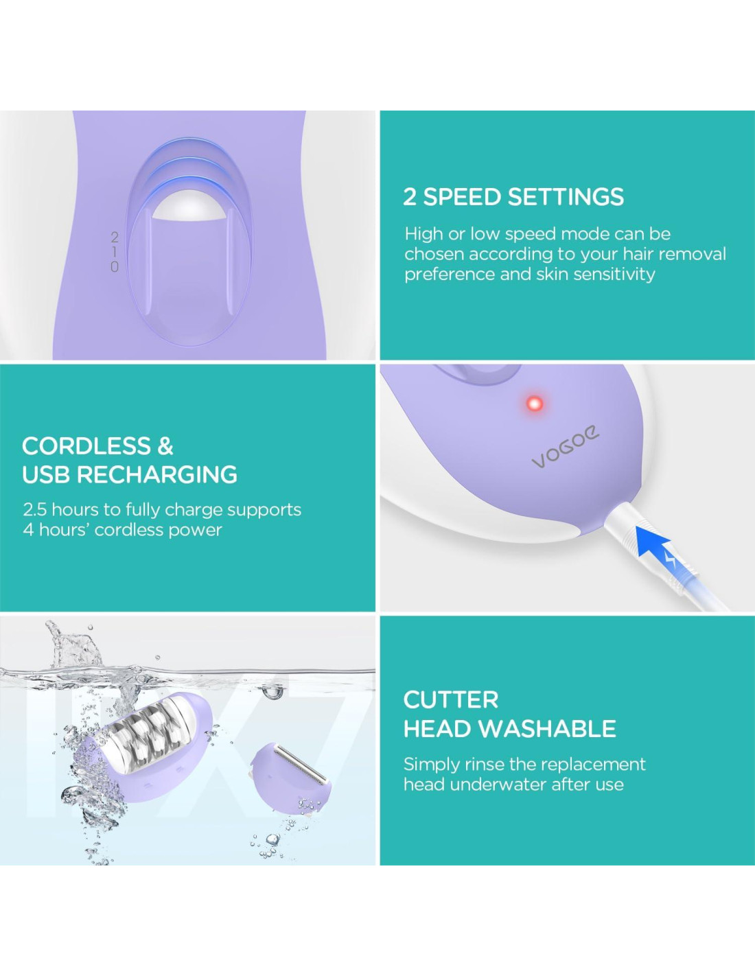 - 2 AJUSTES DE VELOCIDAD - La velocidad del epilador para la eliminación de vello para mujeres es de 1400-1200 RPM. Puedes elegir el modo de alta o baja velocidad según tu preferencia de eliminación de vello y sensibilidad de la piel