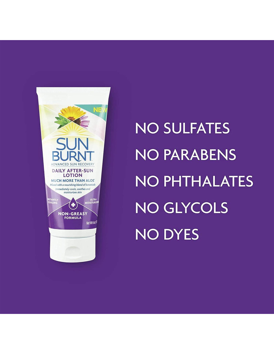 INDICACIÓN: La loción diaria después del sol SunBurnt está infusionada con una mezcla nutritiva de botánicos que enfría, calma e hidrata la piel de inmediato. Esta loción hidratante proporciona alivio calmante para la piel caliente y seca, siendo una excelente manera de refrescarse y recuperarse después de un largo día al sol. La loción SunBurnt también contiene aceite de coco, pepino y extracto de algas, ingredientes antioxidantes que ayudan a eliminar los radicales libres. SunBurnt se absorbe sin dejar una sensación grasosa como muchas otras cremas después del sol.