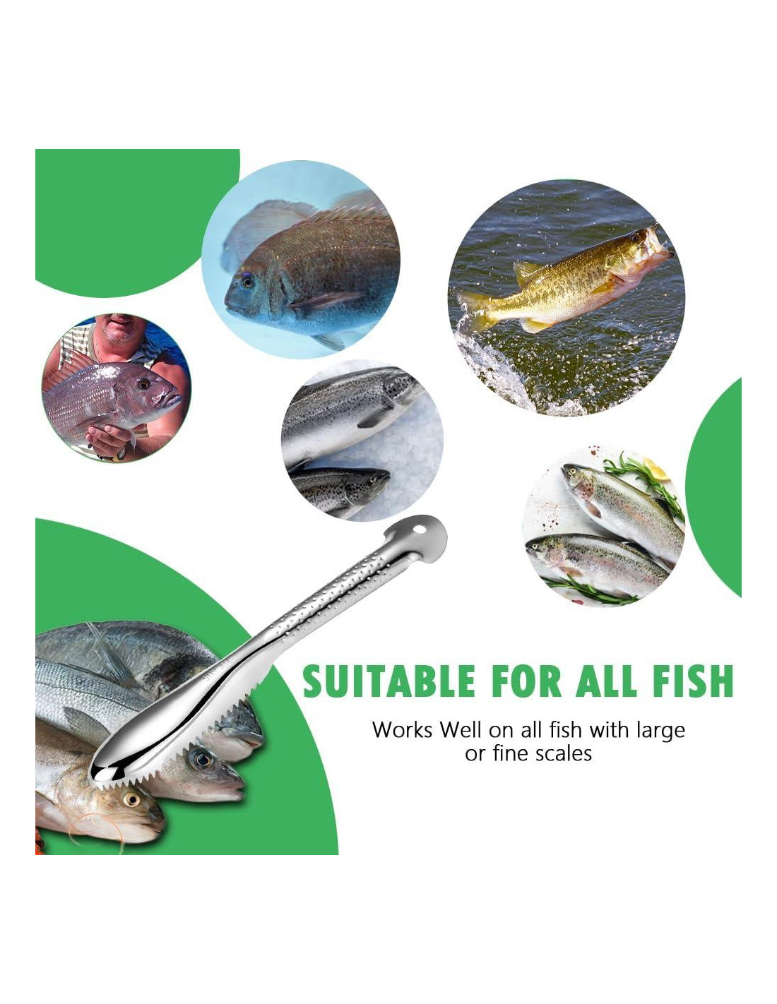 - Adecuado para todos los peces: Esta herramienta de raspado de escamas de pescado es adecuada para todos los peces con escamas grandes o finas, incluyendo pargo rojo, pez roca, salmón, sardina, bacalao negro, trucha y más. También funciona bien en pescado congelado con piel y aquellos que no han sido limpiados adecuadamente de los mercados locales.
