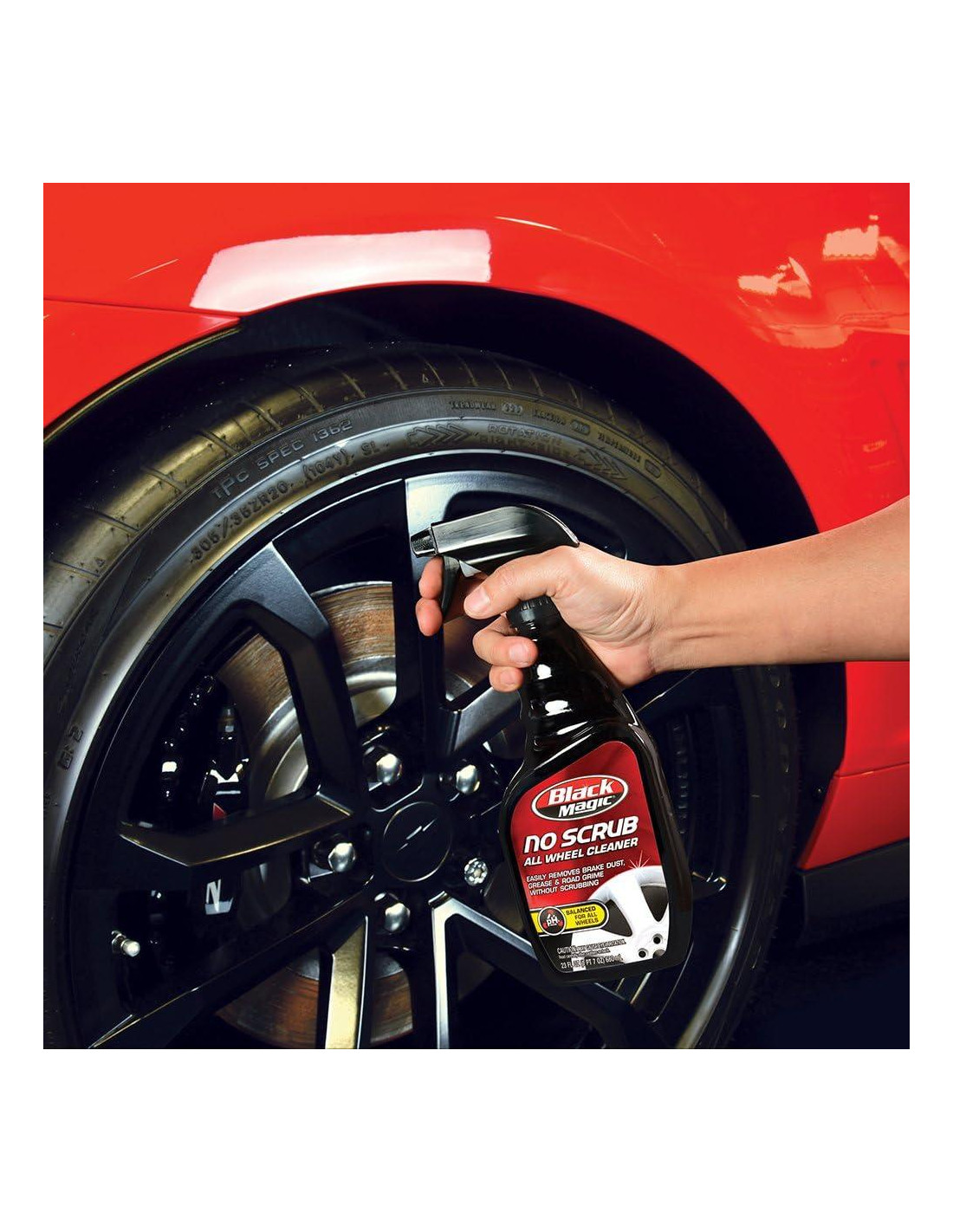 El Limpiador de Ruedas No Scrub Black Magic disuelve rápidamente el polvo de frenos, la suciedad y la mugre de la carretera. Su fórmula poderosa mejora la apariencia de todo tipo de ruedas sin nublar ni decolorar. Especialmente formulado para limpiar de manera segura todos los tipos de ruedas, con una química suave que es segura para su uso en plástico ABS, cromo, aluminio, alambre y ruedas de magnesio con acabado de capa transparente, pulido, pintado o anodizado.