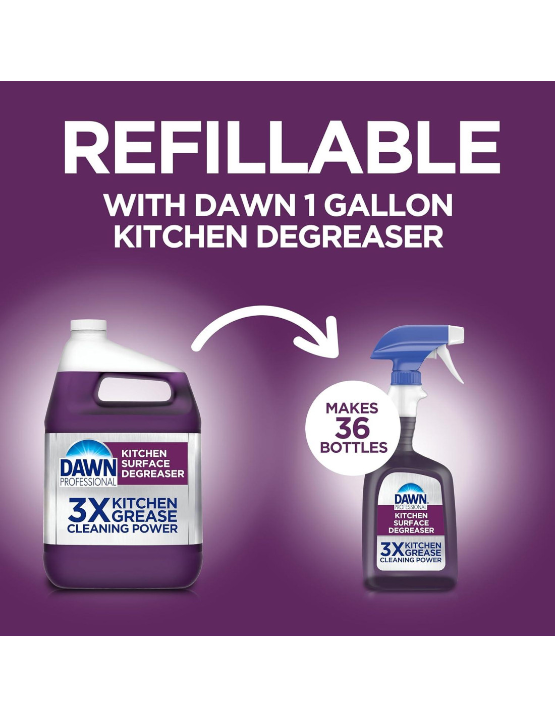 Más Poder. Menos Fregado. Presentando el Desengrasante Profesional Multi-Superficies Dawn de Alta Dureza con una fórmula de limpieza de grasa más fuerte. Este Desengrasante, diseñado para cocinas comerciales, es un verdadero desengrasante multi-superficies con la capacidad de cortar grasa difícil en superficies grasosas, acero inoxidable, campanas extractoras, hornos, paredes, exteriores y más. Comparado con el desengrasante profesional líder, el Desengrasante Profesional Multi-Superficies Dawn de Alta Dureza está diseñado para limpiar suelos grasientos difíciles en múltiples superficies. Limpia grasa/petróleo de cocina pesada (grasa animal polimerizada) en varias superficies de cocina/servicio de alimentos como campanas extractoras, freidoras, hornos, electrodomésticos de acero inoxidable, paredes y otras superficies duras grasosas. Este producto también se puede usar para hervir freidoras. Además, limpia suelos grasientos en superficies exteriores como plataformas de autoservicio y aceras de concreto. Las superficies en contacto con alimentos se pueden lavar con desengrasante diluido si se enjuagan a fondo, se desinfectan con un desinfectante debidamente concentrado y se dejan secar al aire como parte de un proceso de limpieza de 3 pasos. Los productos profesionales Dawn están diseñados para ser duros con la grasa en cocinas comerciales. También prueba el Detergente para Platos Profesional Dawn para el lavado manual de platos y el Limpiador de Pisos Profesional Dawn de Alta Dureza para tus necesidades de limpieza en la cocina comercial. Estos productos de limpieza simples y efectivos pueden ayudar a ahorrar tiempo y hacer que el proceso de limpieza sea más fácil para las empresas y empleados.