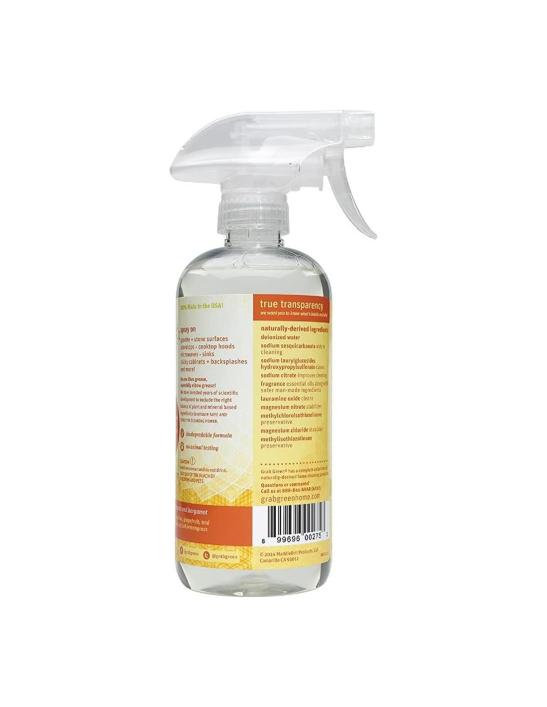 Lucha contra la acumulación más difícil de grasa y suciedad en la cocina con el Desengrasante de Cocina Grab Green. Hecho con ingredientes de origen natural, nuestra poderosa fórmula biodegradable proporciona una limpieza efectiva sin químicos olorosos ni olores nocivos. ¡Perfecto para eliminar grasa y suciedad en campanas de cocina, estufas, hornos, microondas y más! Nuestra fragancia refrescante y brillante de mandarina con hierba limón está hecha con aceites esenciales de mandarina, hierba limón, elemi, bergamota, jengibre, salvia clara, mate, naranja y lima. Suministramos de manera responsable los ingredientes de la más alta calidad basados en plantas y minerales y trabajamos directamente con nuestro equipo de químicos orgánicos para crear las fórmulas más efectivas, de origen natural y no tóxicas. Creemos en la divulgación completa de ingredientes, lo que llamamos Verdadera Transparencia, por lo que enumeramos cada ingrediente y el propósito de cada ingrediente en cada paquete. Grab Green es una empresa propiedad y operada por mujeres y madres que proporciona productos de lavandería, limpieza del hogar y cuidado personal de origen natural y no tóxicos, 100% fabricados en EE. UU. Nuestros productos son eco-responsables y garantizan un poder de limpieza seguro y efectivo para un hogar saludable y feliz.