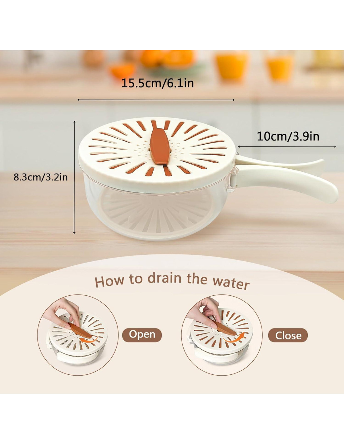 - Contenedor de Colador de Frutas Apilable con Tapa: El diseño apilable de este contenedor de colador de frutas facilita su almacenamiento en los gabinetes de cocina o en el refrigerador. Es lavable a mano, reciclable y resistente a bajas temperaturas, ofreciendo una solución práctica y ecológica para su cocina.