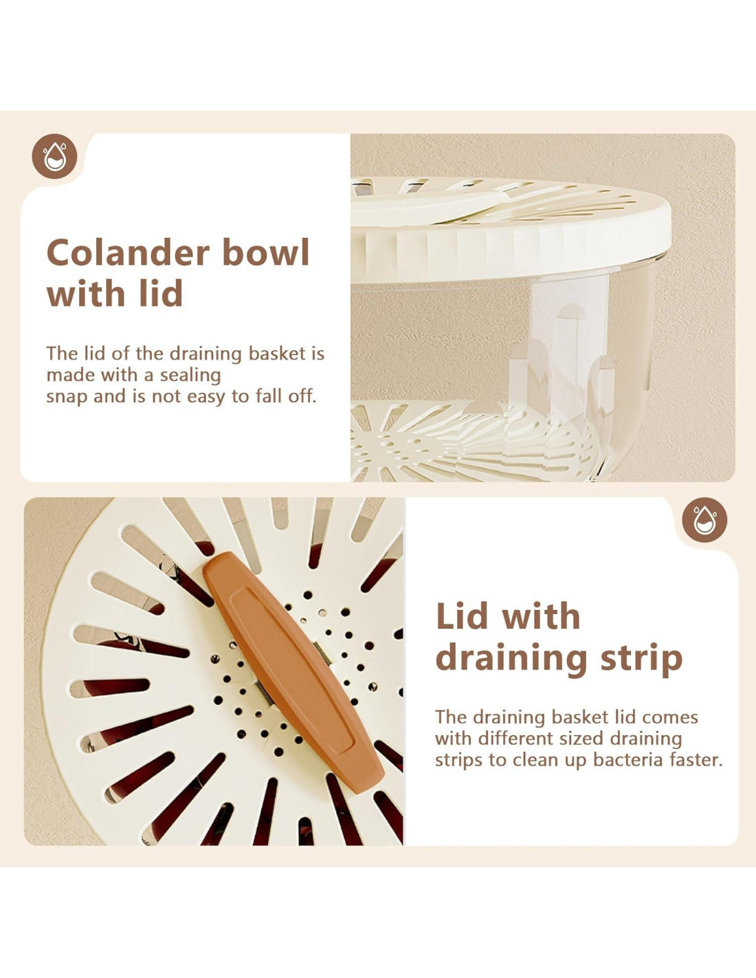 - Canasta de Drenaje 2 en 1: Lavado y Drenaje Eficiente, El diseño de red hueca de la tapa del colador permite un enjuague rápido y completo, mientras que la canasta interior removible asegura un fácil drenaje. Perfecto para limpiar bayas, tomates y otras frutas o verduras pequeñas.