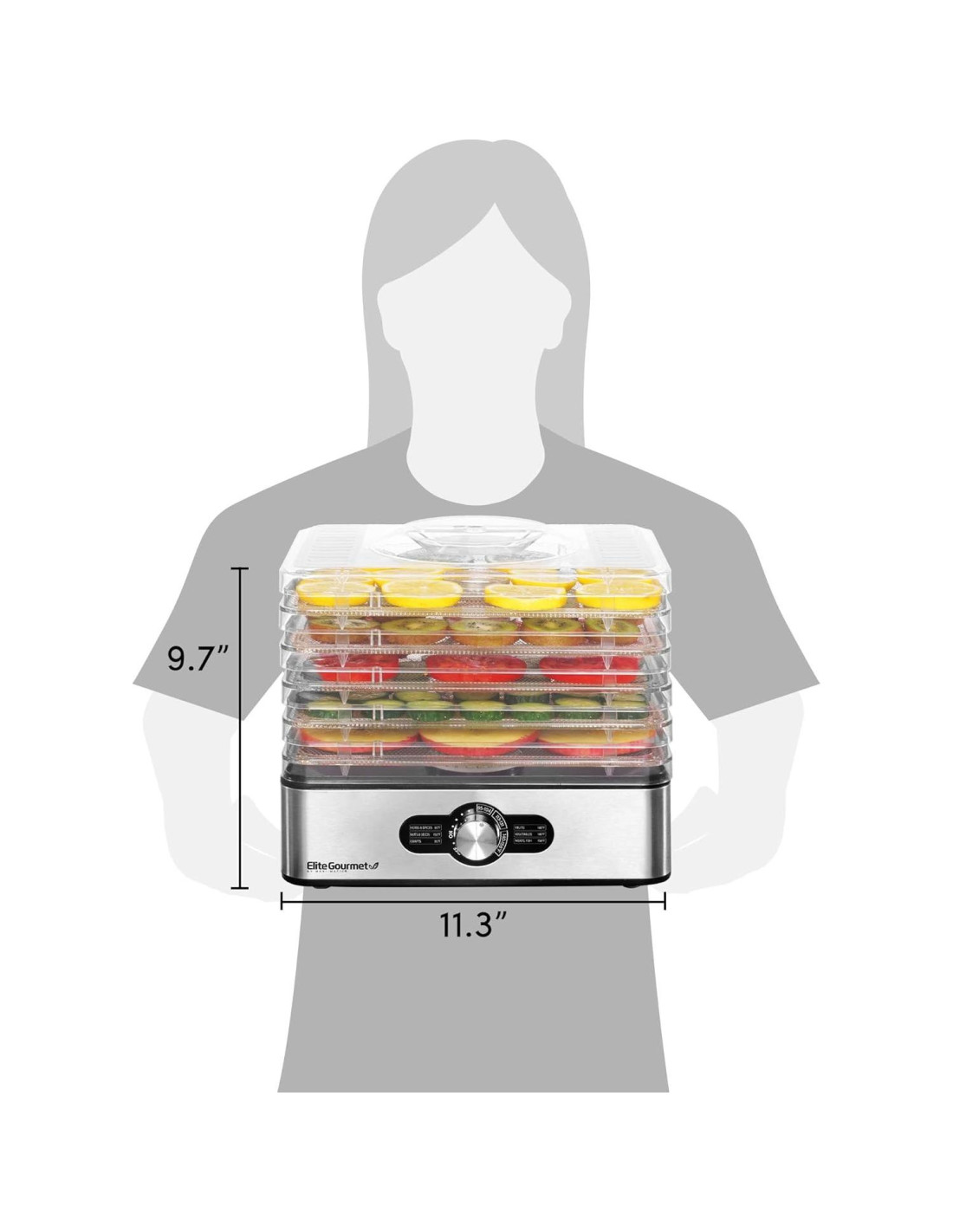 El deshidratador de alimentos de 5 bandejas Elite Gourmet es una opción perfecta para snacks que son nutritivos y bajos en calorías. Con cinco bandejas de secado apilables con fondos de acero inoxidable y 240 vatios de potencia, es fácil secar una variedad de frutas y verduras, ¡e incluso hacer jerky de res! La característica de flujo de aire vertical continuo proporciona un secado uniforme, eliminando la necesidad de rotar las bandejas. Este deshidratador incluye un termómetro ajustable para un mejor rendimiento. Utiliza las bandejas de malla de acero inoxidable apilables e intercambiables para secar hierbas y especias durante todo el año. Disfruta de snacks saludables y caseros para toda la familia.