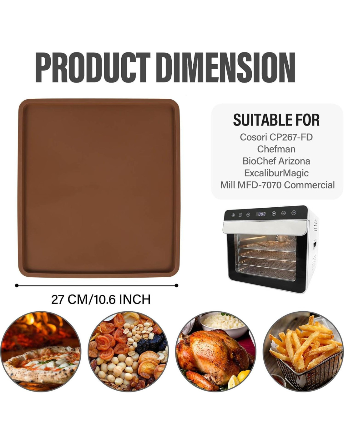 - Bandejas versátiles: Conjunto de 6 bandejas de silicona reutilizables diseñadas para deshidratar jerky, frutas, carne, hierbas, verduras y galletas. Diseñadas para su uso con el deshidratador Cosori CP267-FD y otros modelos compatibles como el deshidratador Magic mill, deshidratador Preston, deshidratador excalibur.