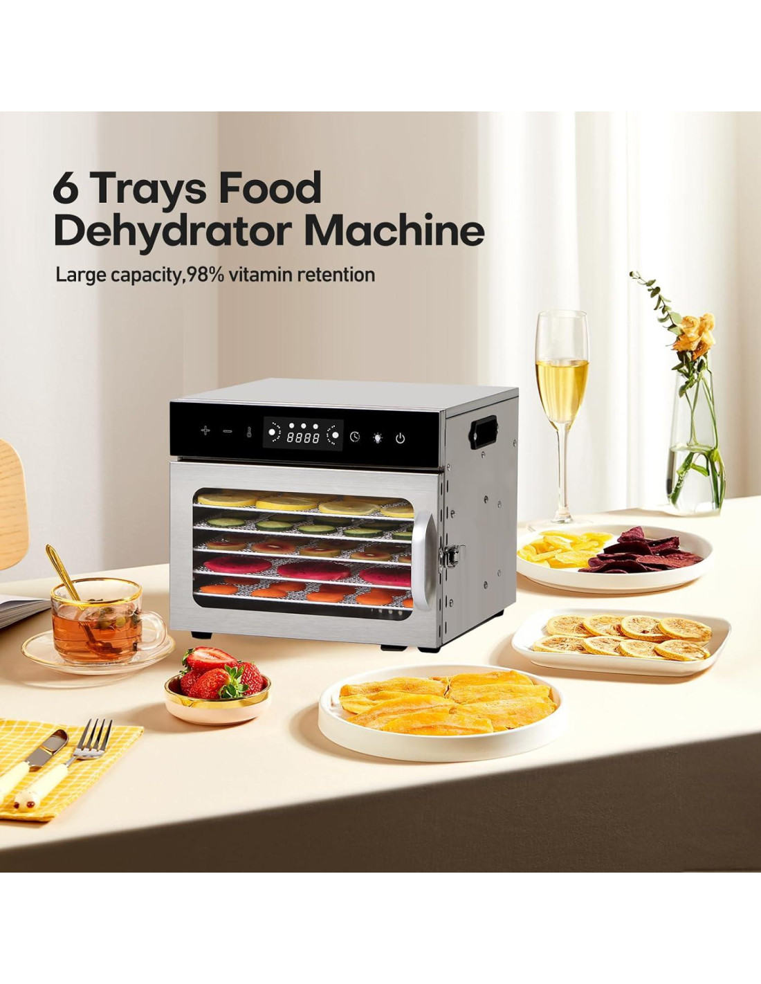 Máquina Deshidratadora de Alimentos Panana, Deshidratadores para Jerky, Deshidratador de Acero Inoxidable para Frutas, Verduras, Hierbas, Champiñones, Golosinas para Perros - Deshidratación de Carne de Res de 6 Bandejas con Temporizador Digital y Control de Temperatura, Regalo de Navidad, Regalo de Año Nuevo