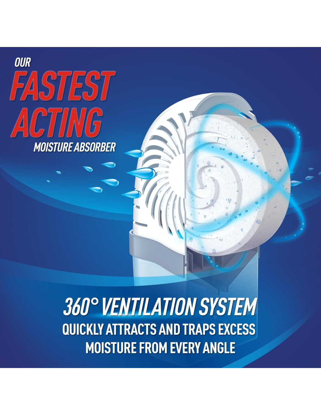 - DISEÑO INNOVADOR: El sistema de ventilación de 360 grados mejora el flujo de aire y maximiza el área de superficie de absorción de humedad para una solución de acción rápida. La tecnología de fragancia de liberación controlada patentada y el diseño resistente a derrames añaden eficiencia conveniente.