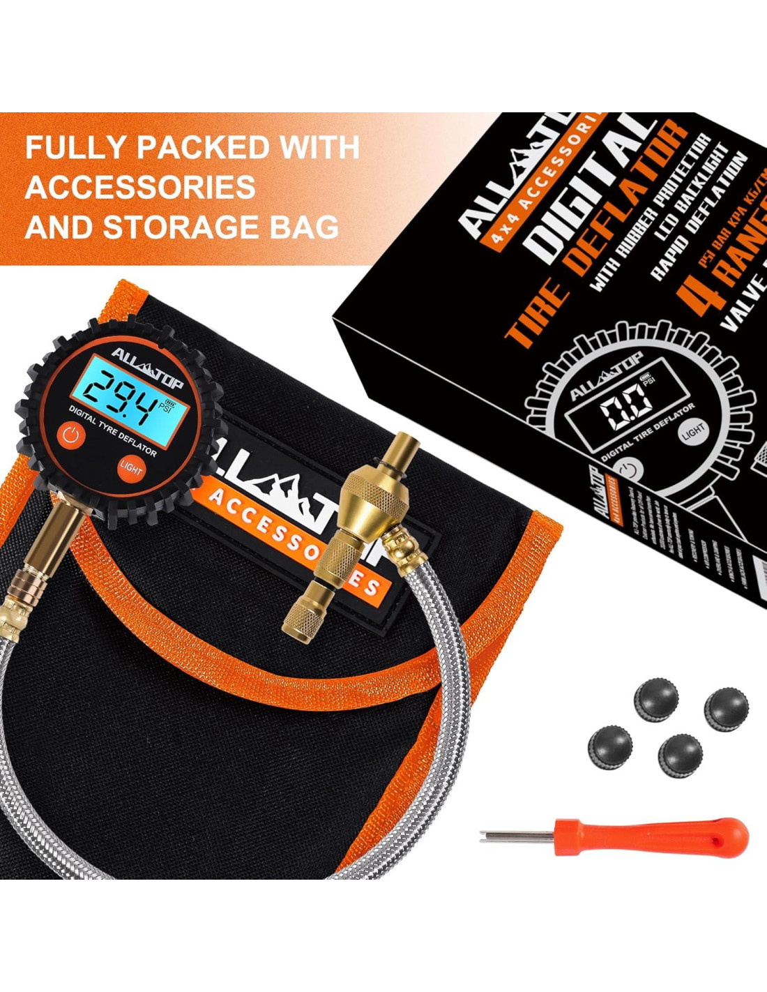 El desinflador rápido de neumáticos ALL-TOP tiene un manómetro de presión de precisión, conector de válvula de latón y una manguera de aire sólida. Puede reducir la presión de los neumáticos en unos pocos segundos para mejorar el rendimiento fuera de carretera. Esta herramienta te proporcionará valores de presión de aire precisos. Será un accesorio imprescindible en todos tus kits 4x4, y lo usarás en todos tus kits 4x4 durante muchos años.