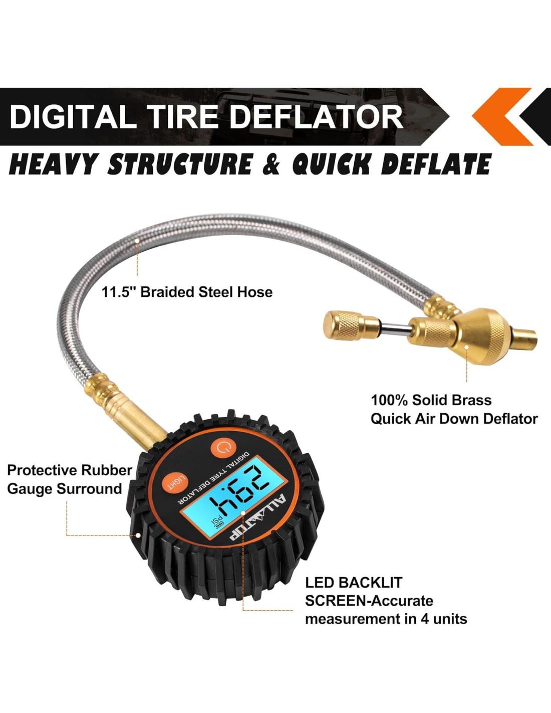 - EL MÁS RÁPIDO Y PRECISO. Este desinflador de neumáticos 4x4 de alta resistencia es un sistema todo en uno diseñado con precisión que quita el núcleo de la válvula para un desinflado más rápido y te permite mantener el control para alcanzar con precisión la presión de neumáticos deseada para una tracción específica. Simplemente desliza el desinflador y podrás cambiar entre lectura de presión instantánea y continuar desinflando.