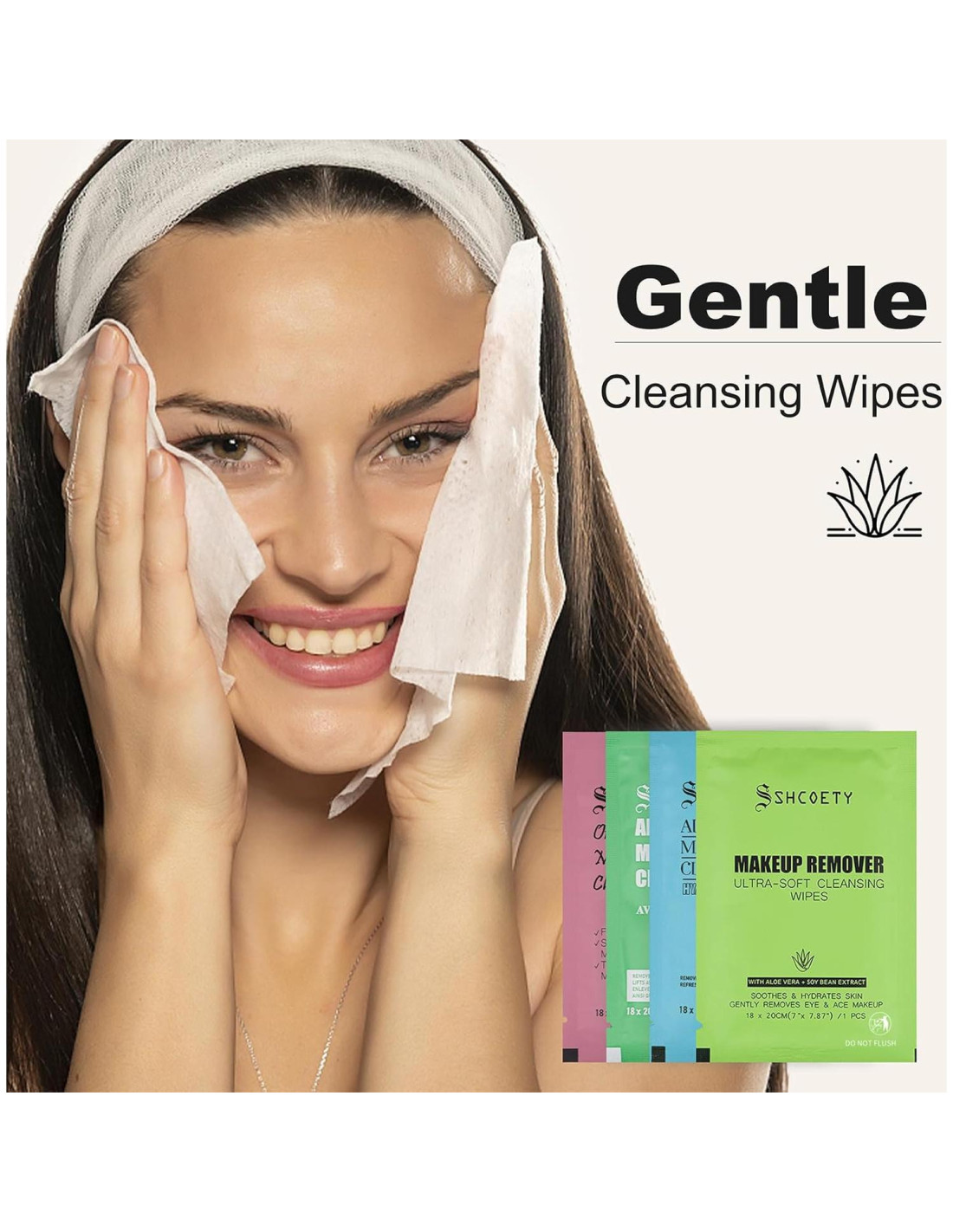 - - Suministro Amplio: 200 toallitas suaves y prehumedecidas para la eliminación diaria de maquillaje, cuidado de la piel, o compartir con amigos, familia o compañeros de trabajo-ideal para el hogar, gimnasio o viajes.