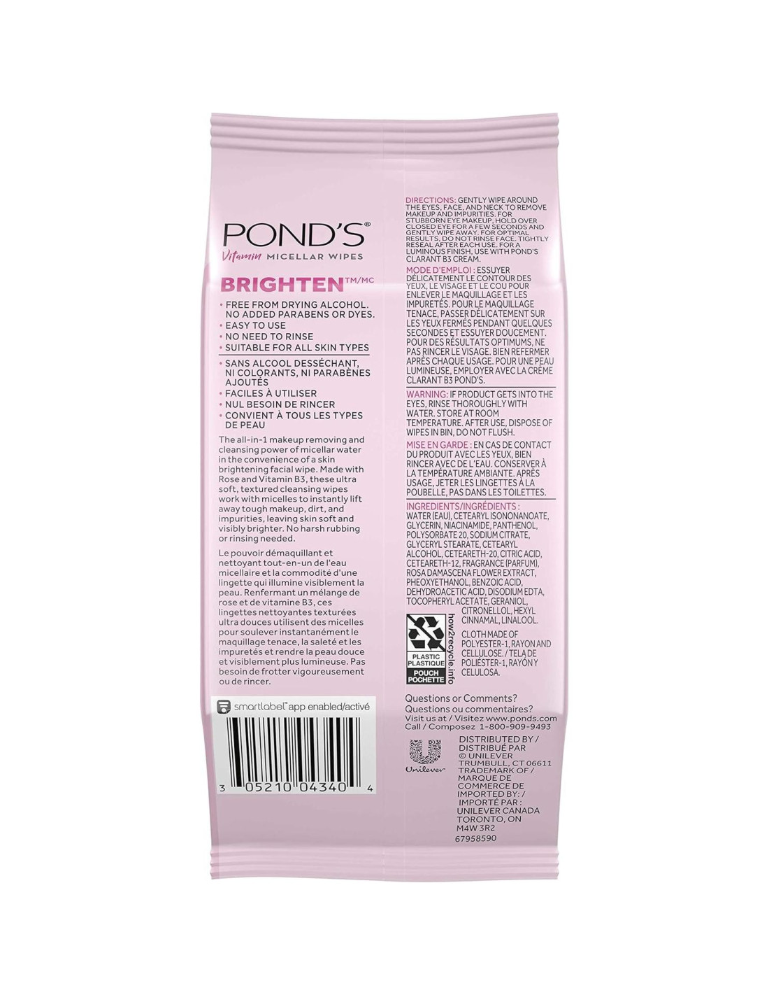 - Obtén todos los beneficios del desmaquillante Pond's sobre la marcha con las Toallitas Micelares de Vitamina Pond's en rosa iluminadora