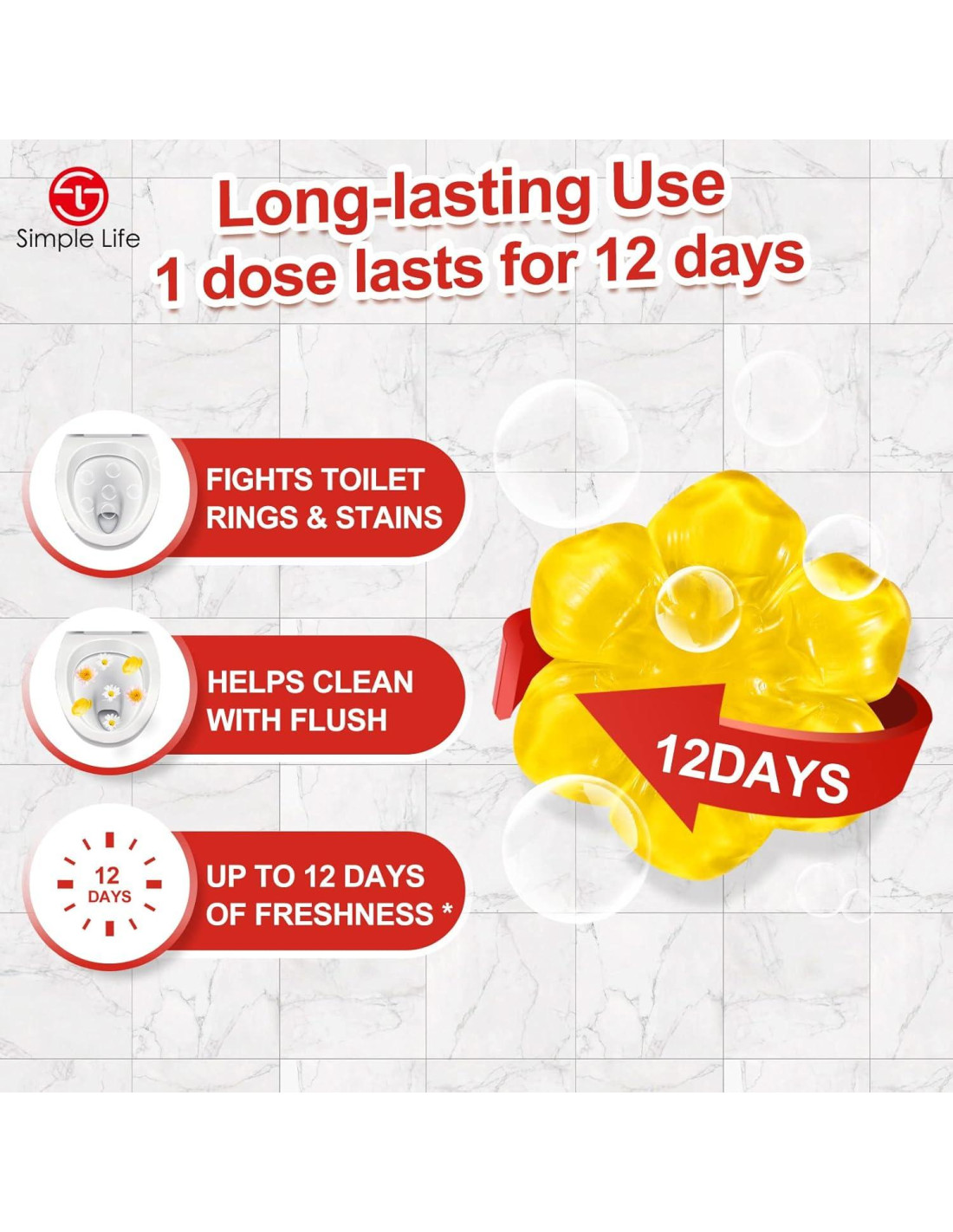 - [LIBERACIÓN FÁCIL] : Limpiar tu inodoro puede ser un trabajo tedioso. El nuevo mecanismo de liberación de un solo paso del Sello de Gel para Inodoro de Simple Life aplica sellos de flores aromatizados en segundos. El diseño amigable para el usuario crea un proceso de aplicación consistente y simple, asegurando una experiencia de limpieza efectiva y rápida del inodoro.