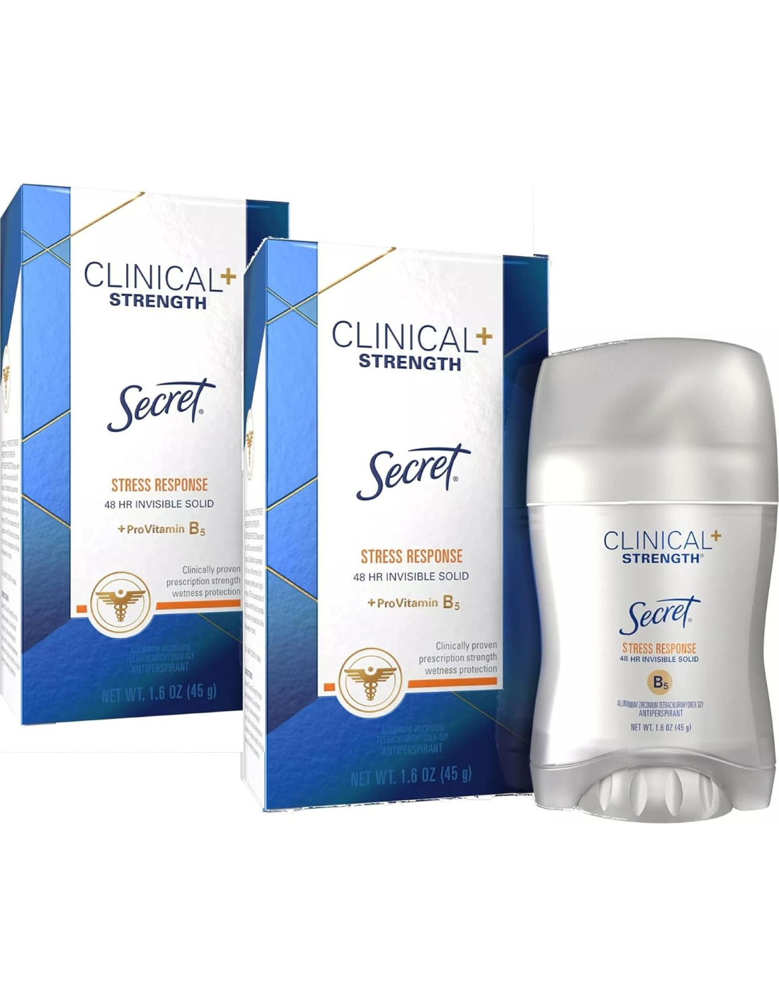 ¿Sabías que el calor, la actividad y el estrés pueden hacer que sudes, y que el sudor por estrés huele PEOR que otros tipos de sudor? El sudor por estrés proviene de una glándula diferente, causando más bacterias y más olor. Secret Clinical Strength tiene tecnología Adapta y Responde que te brinda 4X protección contra el sudor por estrés*. Absorbe el olor mientras libera fragancia, para mantenerte oliendo limpio y sintiéndote seco. Disfruta de cobertura todo el día con el antitranspirante/desodorante Secret Clinical Strength - protección increíble, sin importar lo que el día pueda traer. *en comparación con la protección contra la humedad requerida de un antitranspirante ordinario