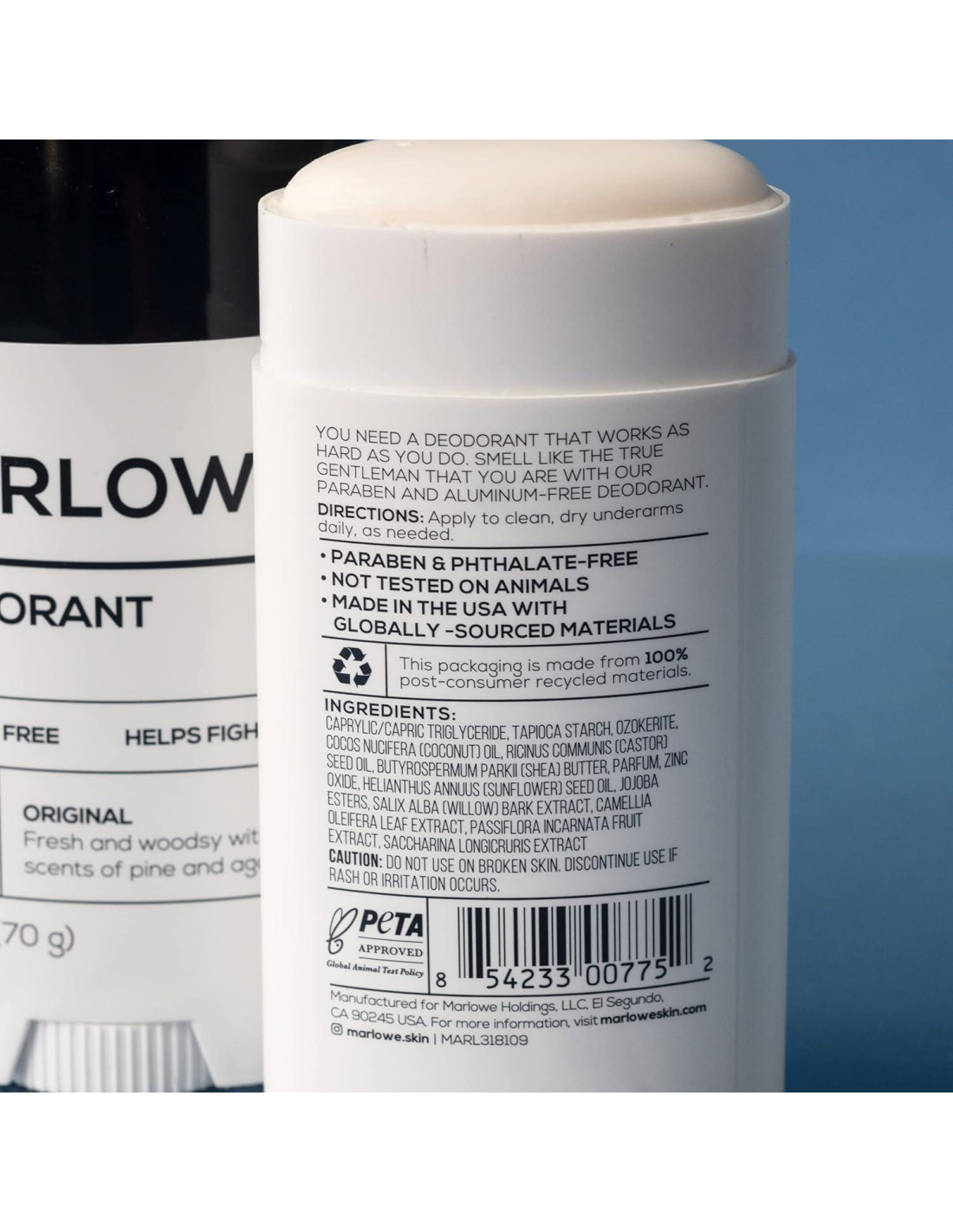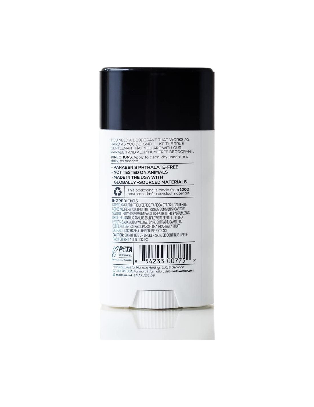 - Frescura Todo el Día: El desodorante natural para hombres MARLOWE. es libre de aluminio y bicarbonato de sodio, y está diseñado para mantenerte fresco durante todo el día. Ingredientes de alta calidad que ayudan a neutralizar el olor, dándote todo lo que necesitas y nada de lo que no.