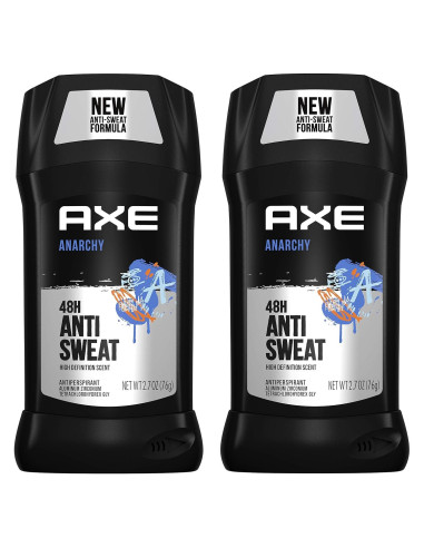 - AXE Desodorante Antitranspirante en Barra para Hombres, Anarquía Para Él, 76.5 g proporciona 48 horas de protección contra olores y humedad para mantenerte fresco y seco con confianza por más tiempo