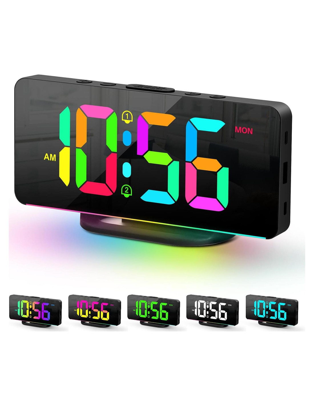 - Característica especial: Brillo Ajustable, Reloj Despertador Nocturno Colorido, Reloj de Alarmas Dobles, Reloj Despertador Multimodal, Volumen de Alarma Ajustable