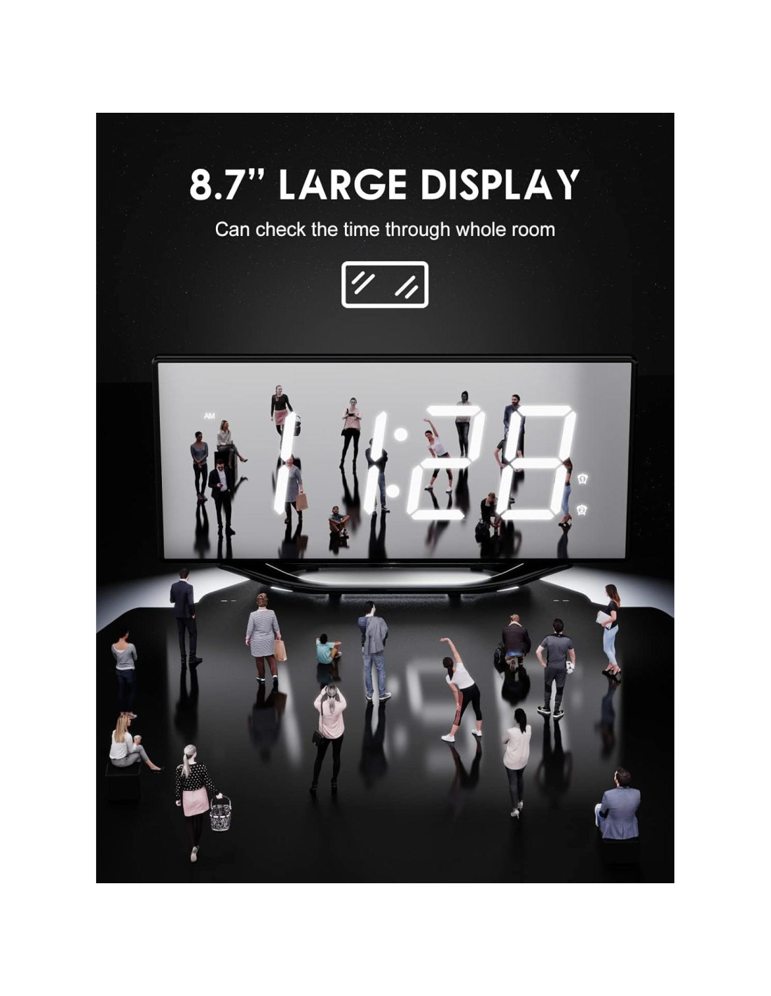 - 8.7" (22.1 cm) Espejo LED y Reloj de Mesita Moderno: No solo un reloj despertador digital, sino también un espejo funcional. La gran pantalla muestra la hora claramente, y el espejo añade un toque práctico a la decoración de tu dormitorio.