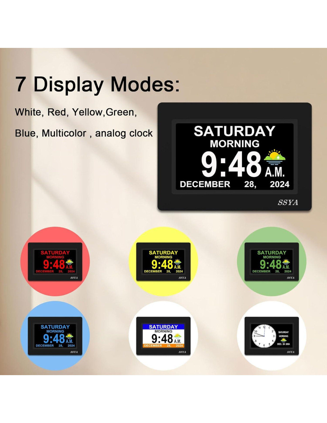 - Atenuación Automática Nocturna: El reloj se atenúa automáticamente durante la noche a las 7:00 pm y se ilumina durante el día a las 7:00 am. También tiene la opción de desactivar la función de atenuación automática, 5 niveles de brillo para elegir, lo cual es conveniente para las personas que prefieren un alto brillo todo el día.