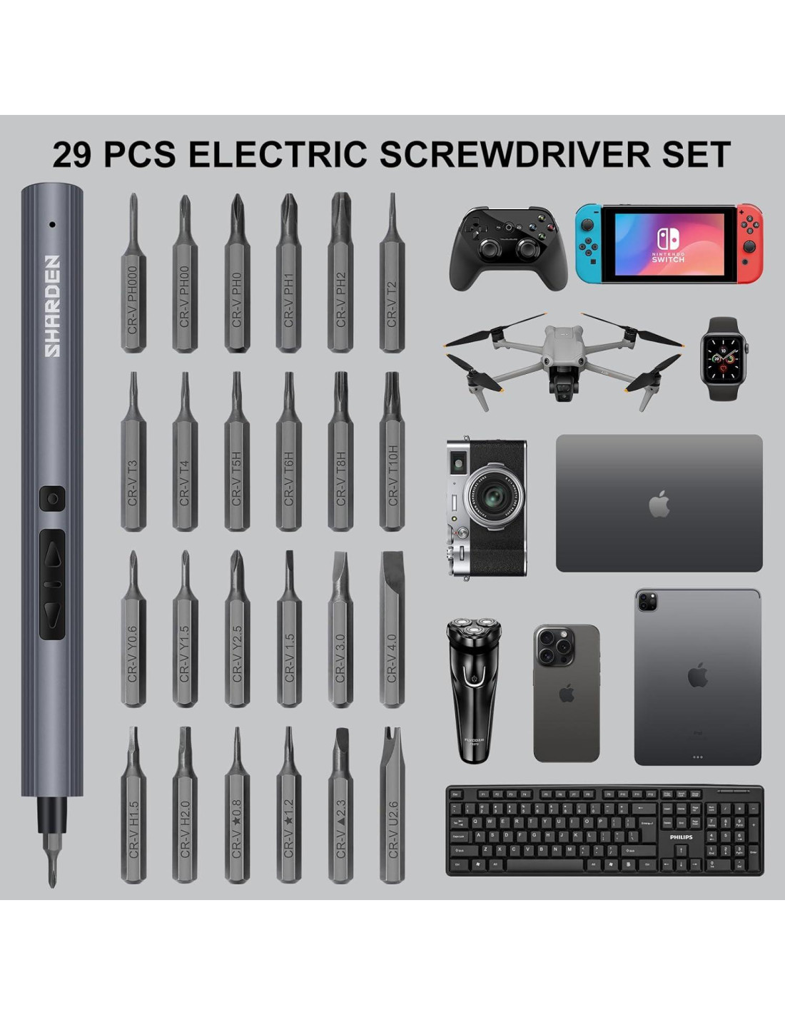 - [Par de Precisión] El pequeño destornillador eléctrico SHARDEN está equipado con un alto par de 0.35 Nm y un bajo par de 0.15 Nm, así como un par manual de 7 Nm, asegurando una fuerza precisa siempre que la necesites. Este destornillador eléctrico de precisión es perfecto para dispositivos como computadoras, tabletas, teléfonos inteligentes, relojes, pulseras electrónicas, cámaras, instrumentos de precisión y más.