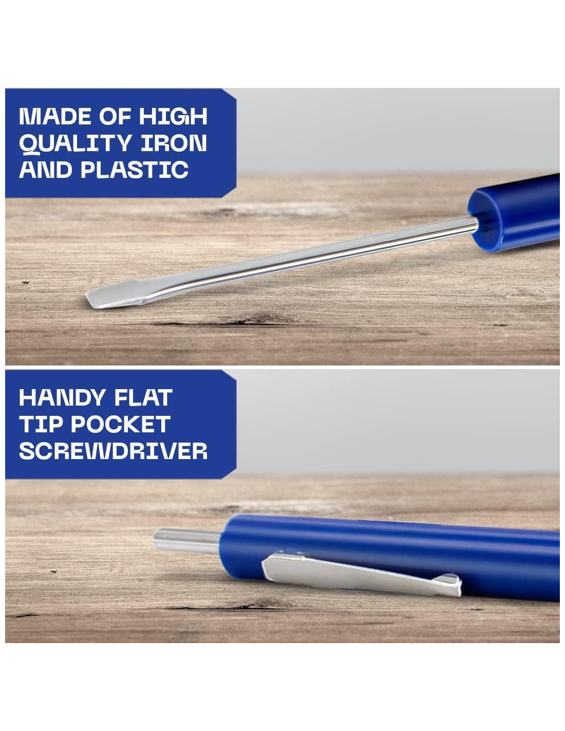 - Construido para durar - Diseñado para su uso en entornos corrosivos, este destornillador plano de bolsillo cuenta con una robusta construcción de acero. Ya sea que necesites un destornillador de control o un mini destornillador de bolsillo, esta herramienta está diseñada para un uso repetido