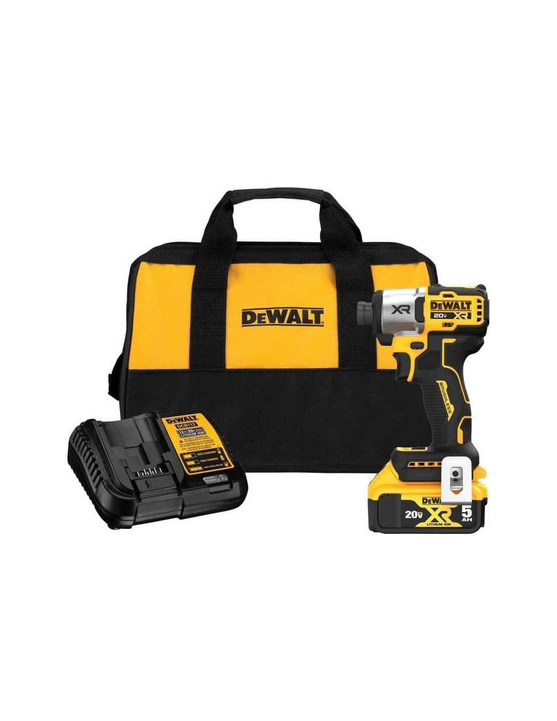 - Componentes incluidos: DCF845 20V MAX* XR 1/4 in. 3-Speed Destornillador de Impacto; DCB205 20V MAX* 5.0 Ah Batería; Gancho para cinturón; Cargador; Bolsa de kit