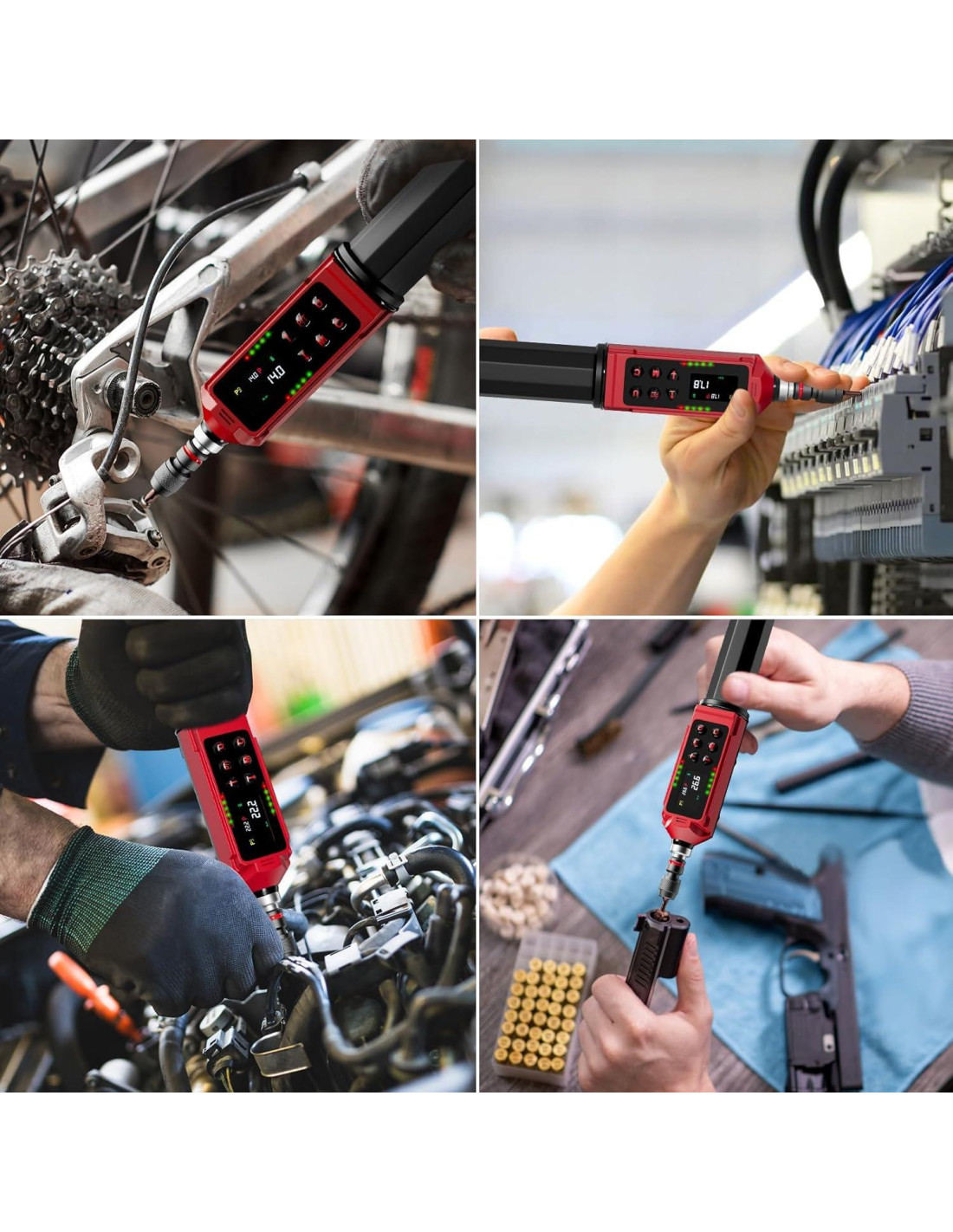 - [+/-1% de Precisión y Gran Pantalla LED Colorida] La precisión del destornillador de par digital alcanza +/-1%, la precisión es mejor que la mayoría de los juegos de destornilladores de par en el mercado. La gran pantalla LED colorida proporciona una visualización brillante y clara, facilitando a los usuarios la lectura y operación incluso en entornos con poca luz.