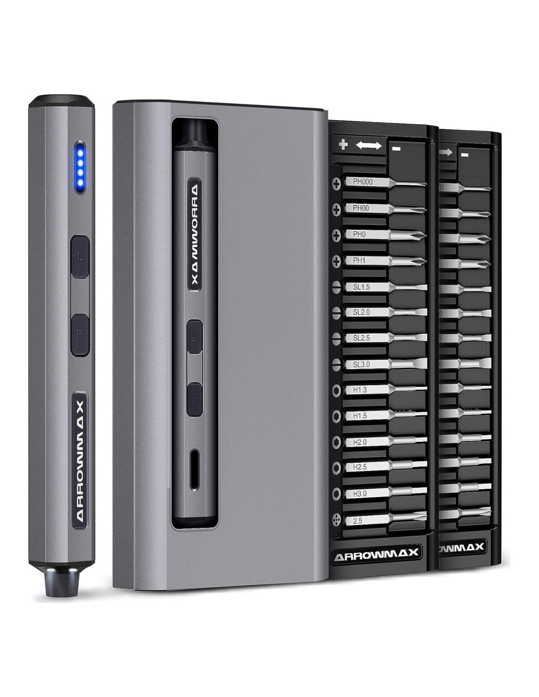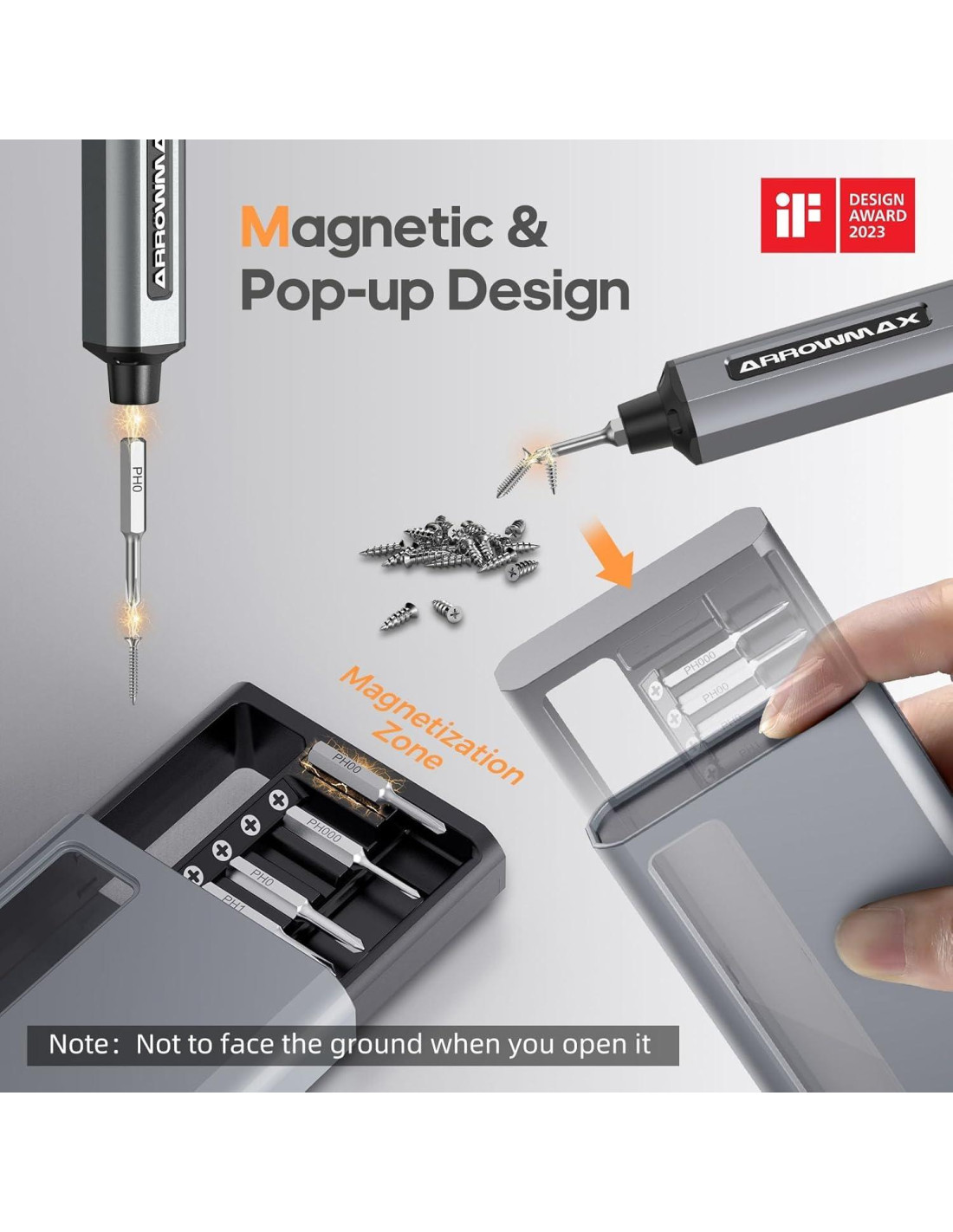 - [28 Puntas Magnéticas Completas] Nuestro juego de destornilladores de precisión ofrece una colección versátil de 28 puntas magnéticas, diseñadas para abordar varios escenarios con facilidad, desde teléfonos, laptops hasta drones, relojes, juguetes, modelos y más. Con el portapuntas magnético, cambia sin problemas entre puntas sin la molestia de tornillos caídos, asegurando un trabajo eficiente y preciso. La conveniente caja de almacenamiento de puntas magnéticas emergente mantiene tus puntas organizadas y accesibles, permitiéndote conquistar cualquier tarea sin esfuerzo.