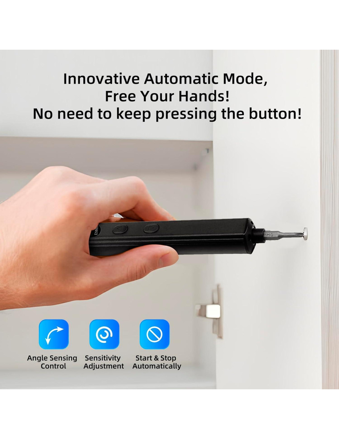 - [Destornillador Eléctrico Innovador] El destornillador eléctrico ES666 es una innovación industrial. Admite modos automático/sensor/fijo. No necesitas presionar el botón todo el tiempo en modo automático. El menú admite chino/inglés/ruso.